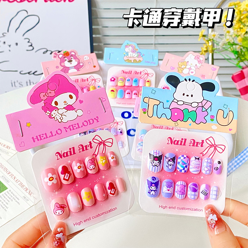 在庫あり新しい子供用ウェアラブルネイルサンリオ漫画ネイルアートデコレーションステッカーdiyかわいいギフト子供のための卸売