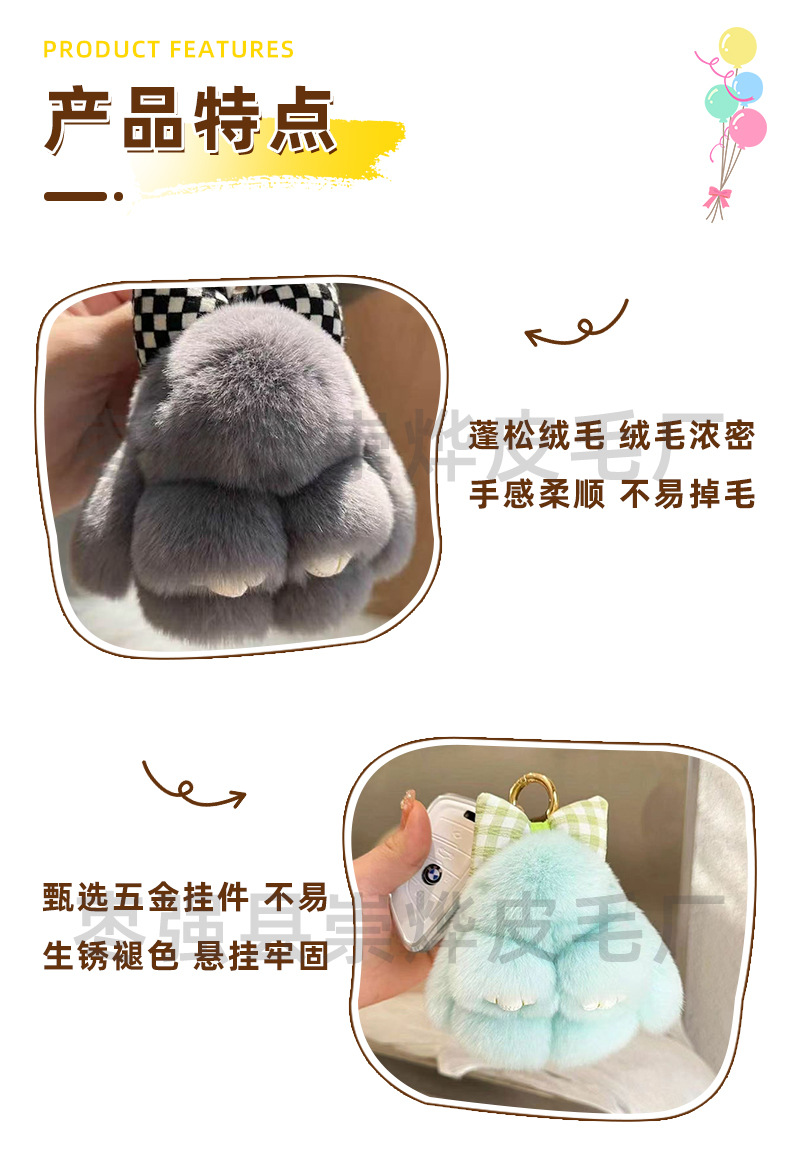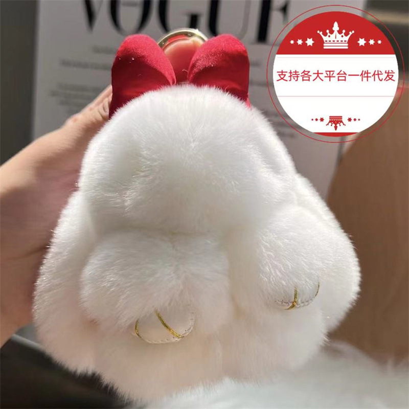 仿獭兔毛蝴蝶结小兔子汽车钥匙扣挂件ins风公仔胖兔子毛绒挂件