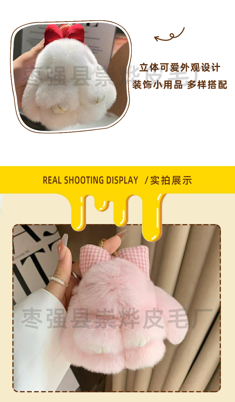 本物のウサギの毛皮の蝶結び付きの小さなウサギの車のキーホルダー、インスタ映えするぬいぐるみ、バッグの飾り、人形