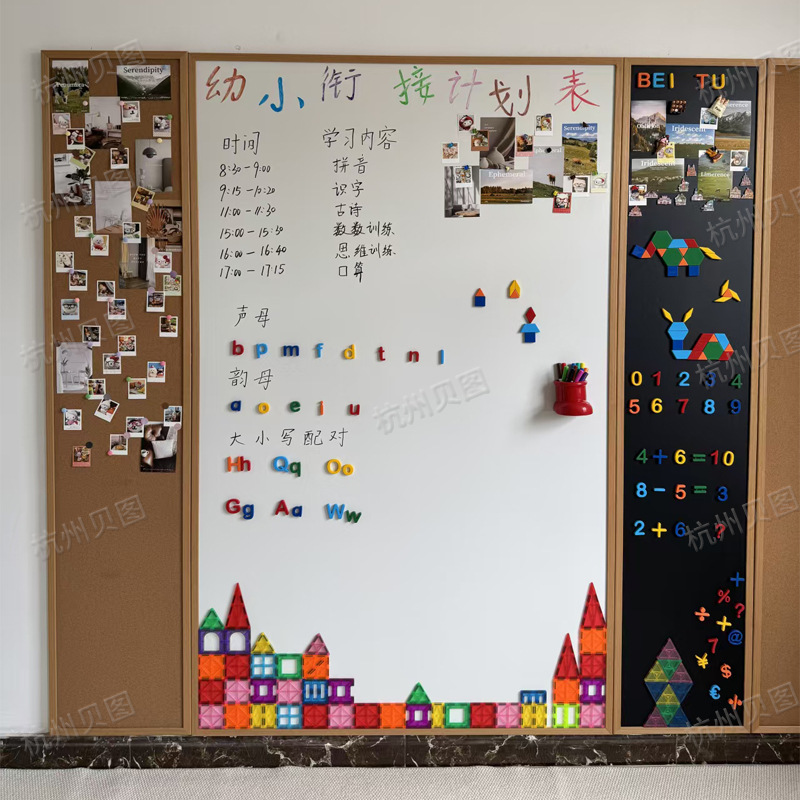 齐富批发磁吸白板墙实木框组合软木板照片墙磁性黑板画磁性墙板