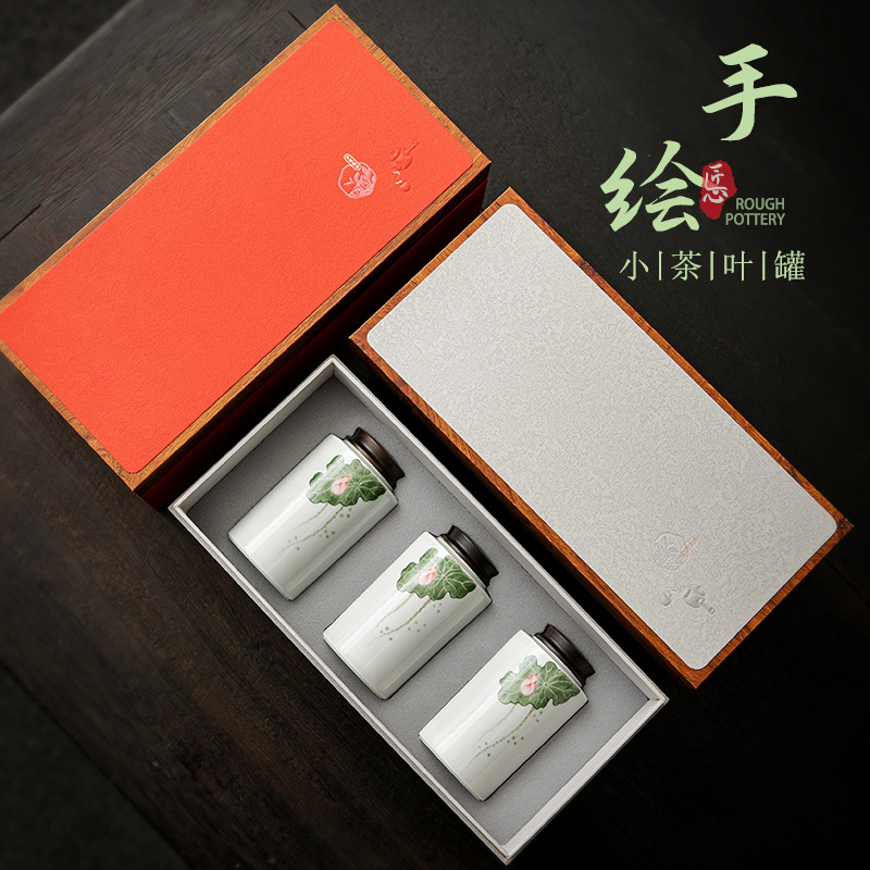 陶磁器のお茶の缶の逸品の高級な密封の缶の手描きのハスの花の新型の精巧なミニの小さいお茶の缶のお茶の包装