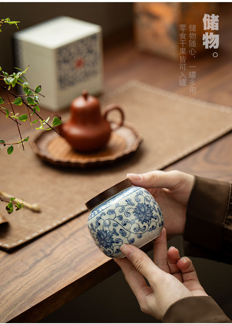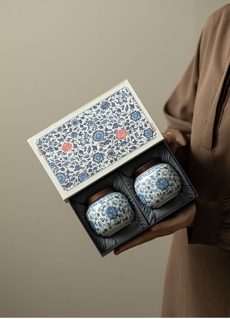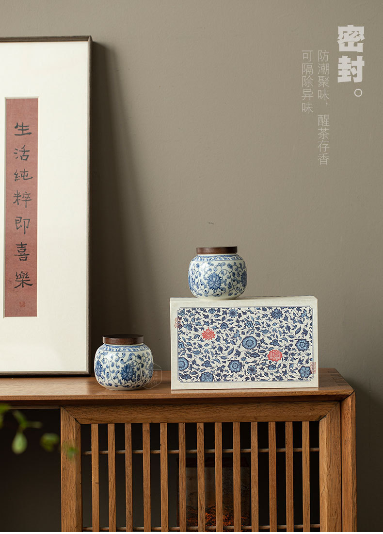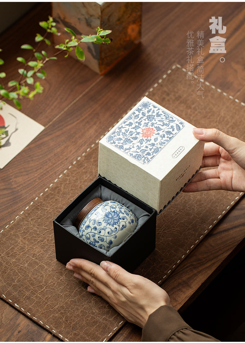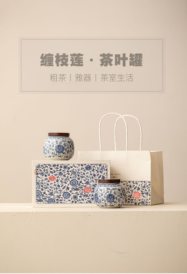 青花瓷茶叶罐密封小罐子缠枝莲迷你陶瓷存茶罐茶叶包装礼盒定制