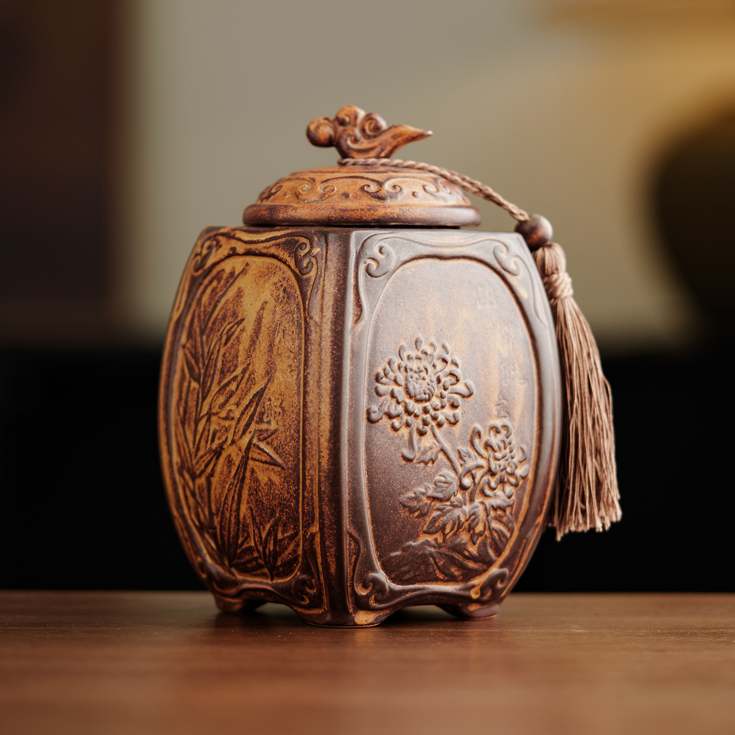 茶缶セラミックレトロ古い陶器粘土セラミック缶保存缶防湿茶保存缶小型密封缶一般缶