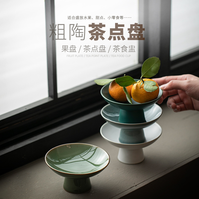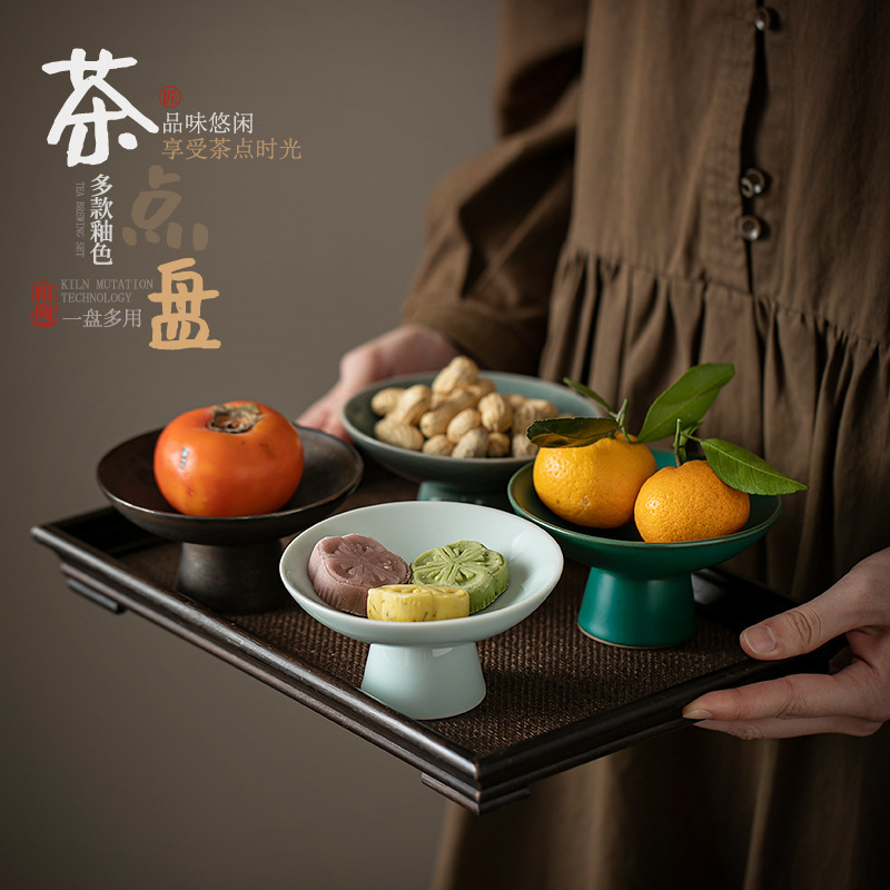 新商品の中国式のシンプルなお茶の皿の高足の小さいサイズの精巧なお菓子の皿の果物の皿のお茶のテーブルのドライフルーツの皿のお菓子の皿