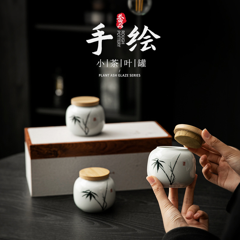 純粋な手描きの竹の陶磁器のお茶の缶のミニ携帯の小さいサイズのお茶の密封の缶は持ち歩いてお茶の小さい缶を蓄えます。