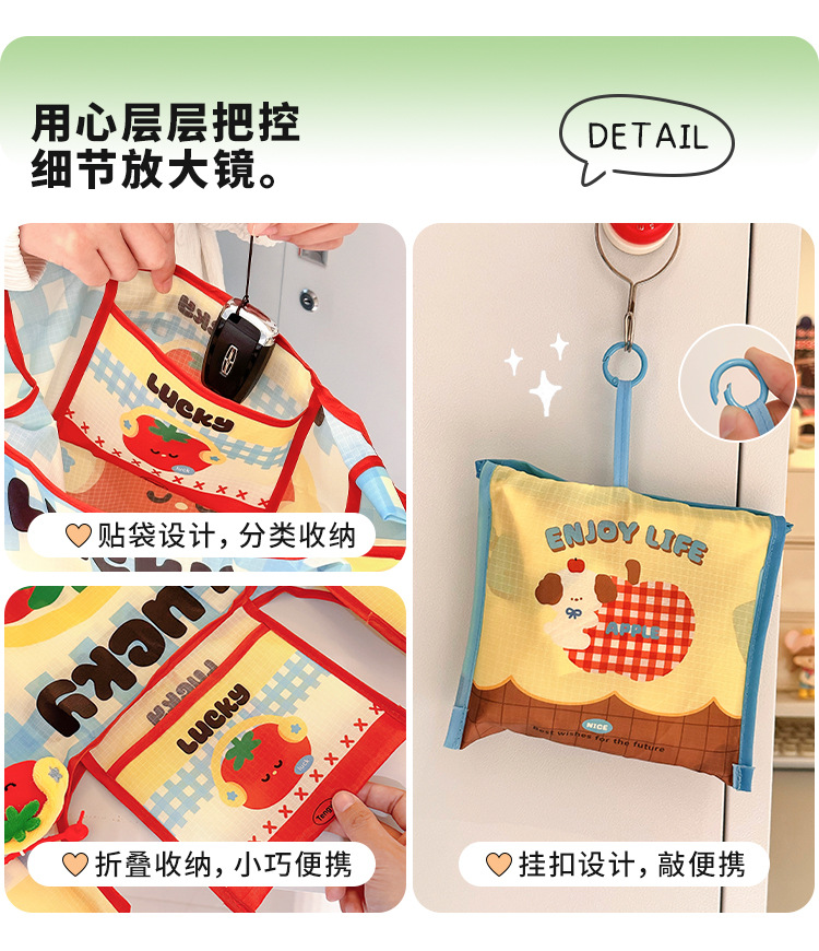 腾亿原创卡通苹果购物袋可收纳折叠环保袋大容量超市购物袋手提袋