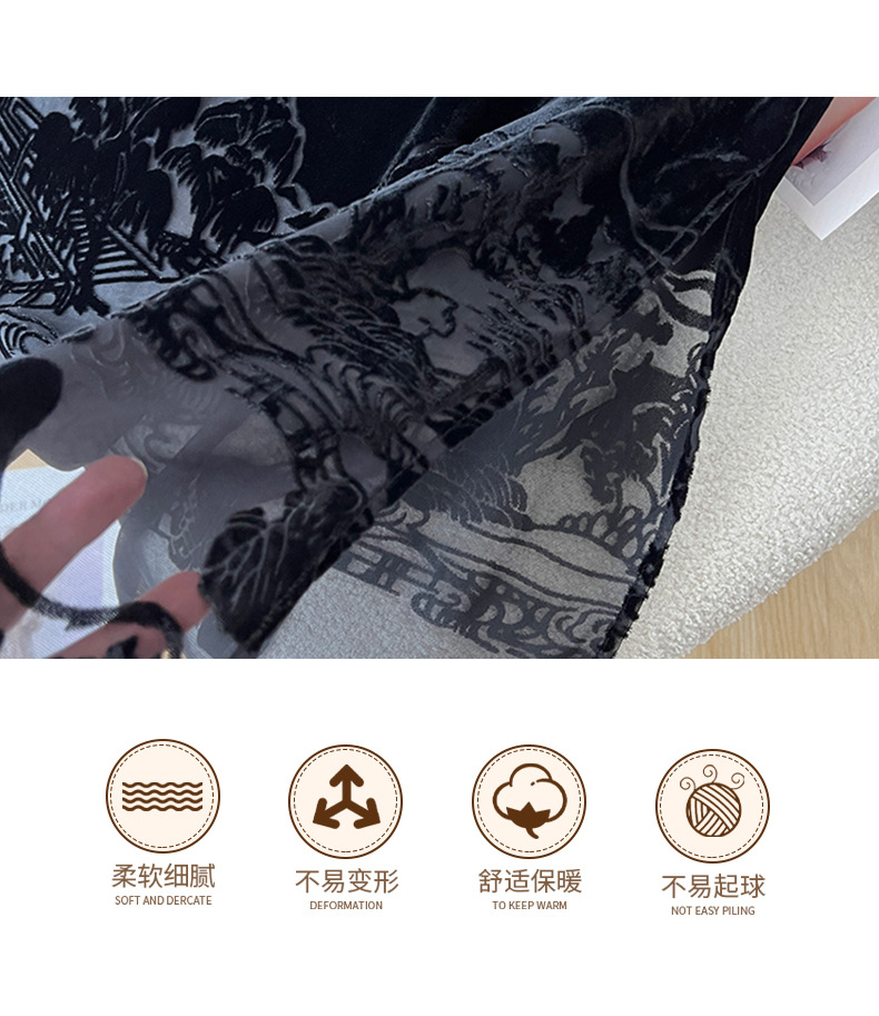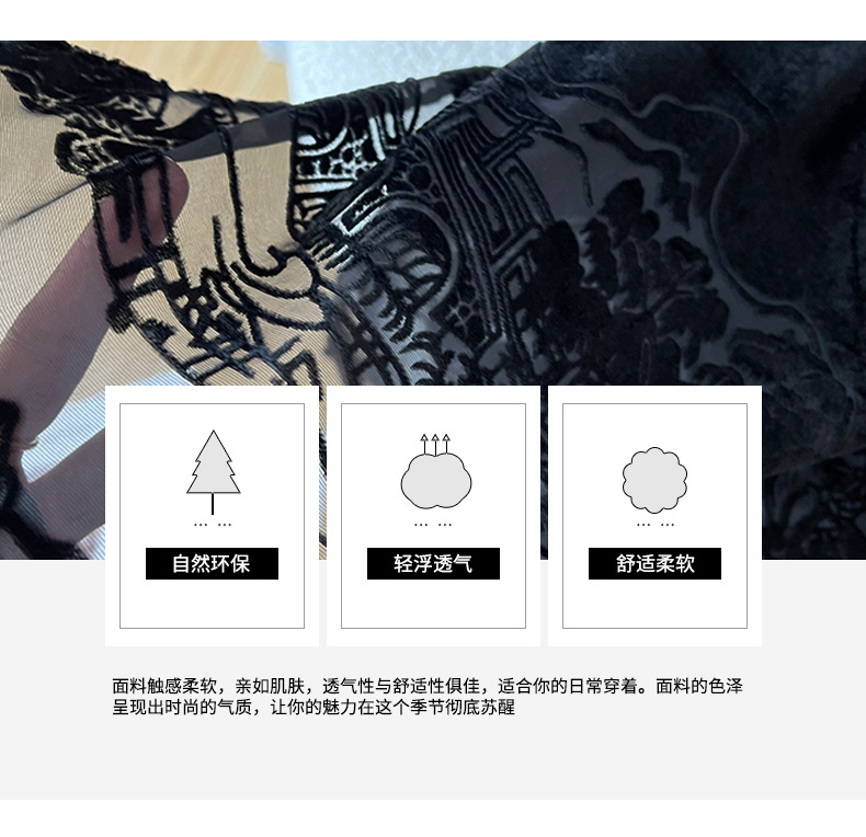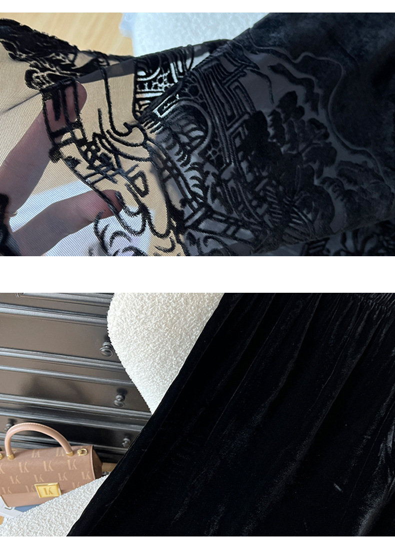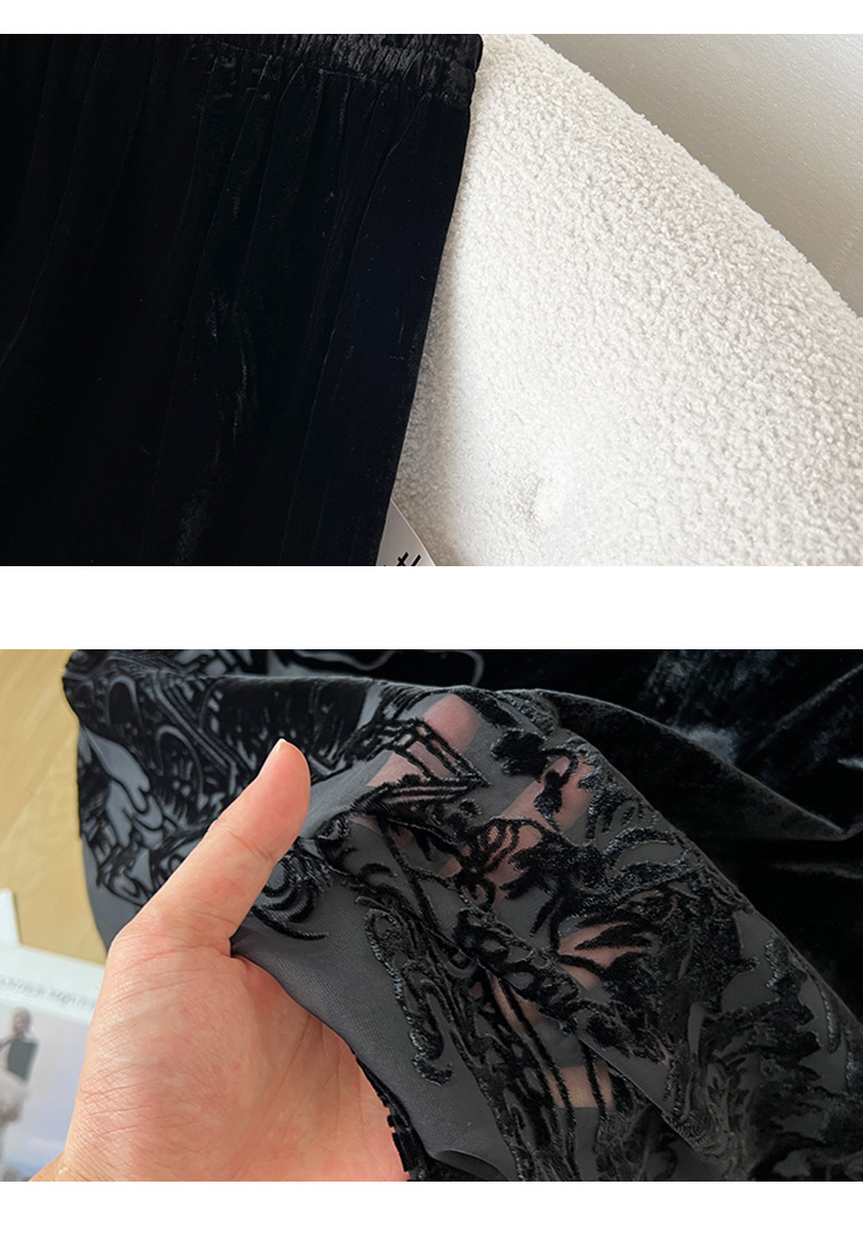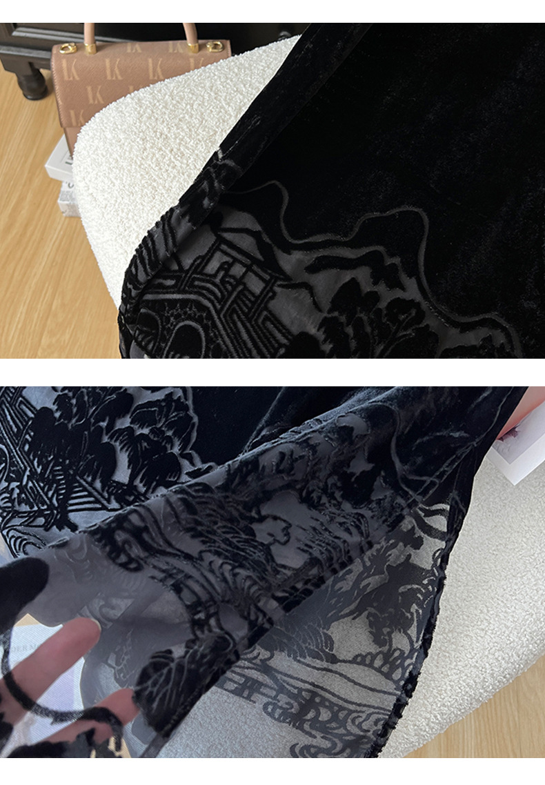 2025秋季爆款丝绒烧花半身裙女黑色显瘦气质百搭裙子中式国风长裙