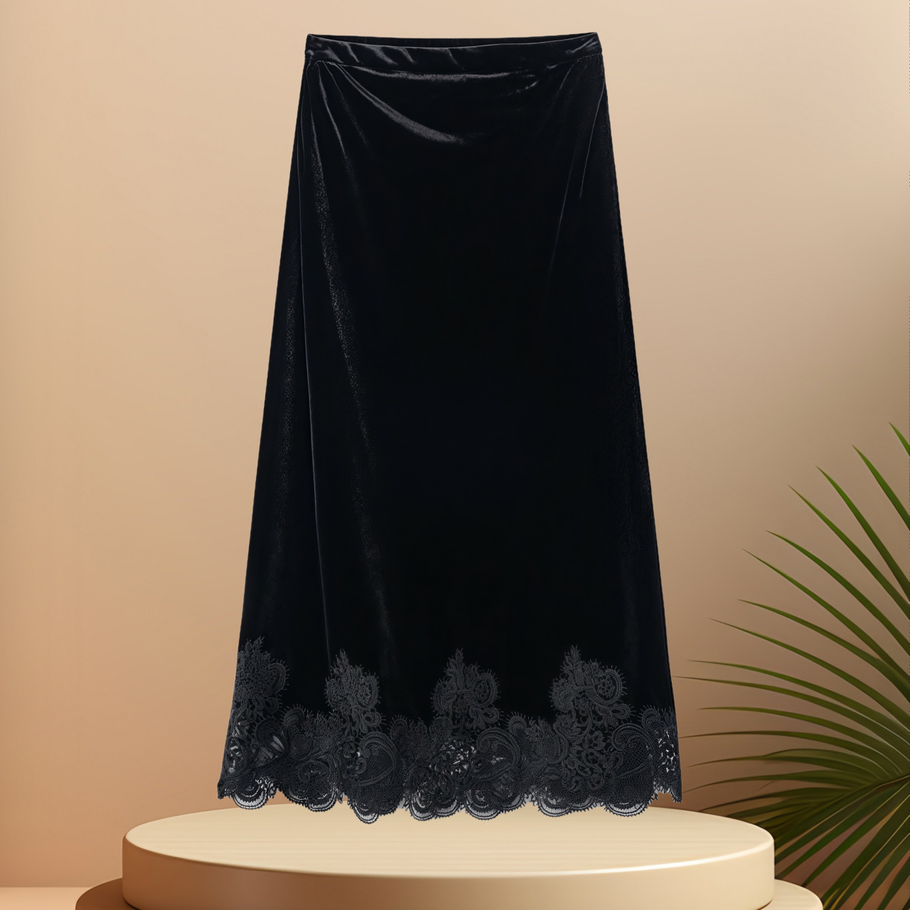 批发一件代发法式丝绒拼接蕾丝半身裙女2025百搭优雅包臀中长款裙