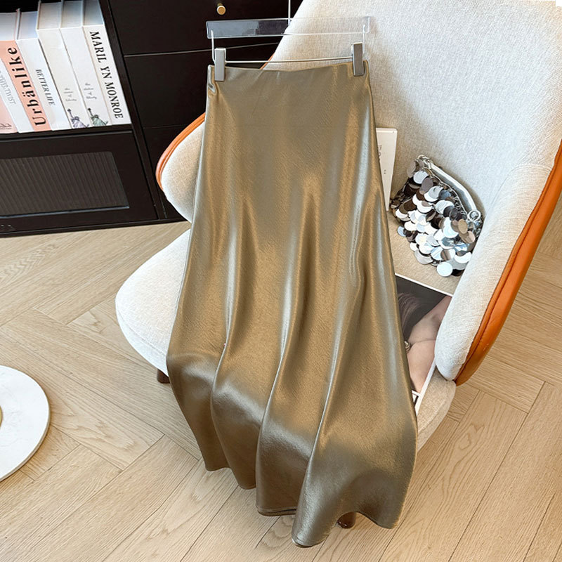 醋酸缎面半身裙高端小个子包臀鱼尾裙秋季新款高腰显瘦丝滑长裙女
