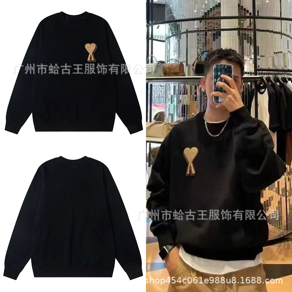 ami ancient卫衣秋冬款爱心刺绣圆领卫衣宽松休闲男女款上衣跨境
