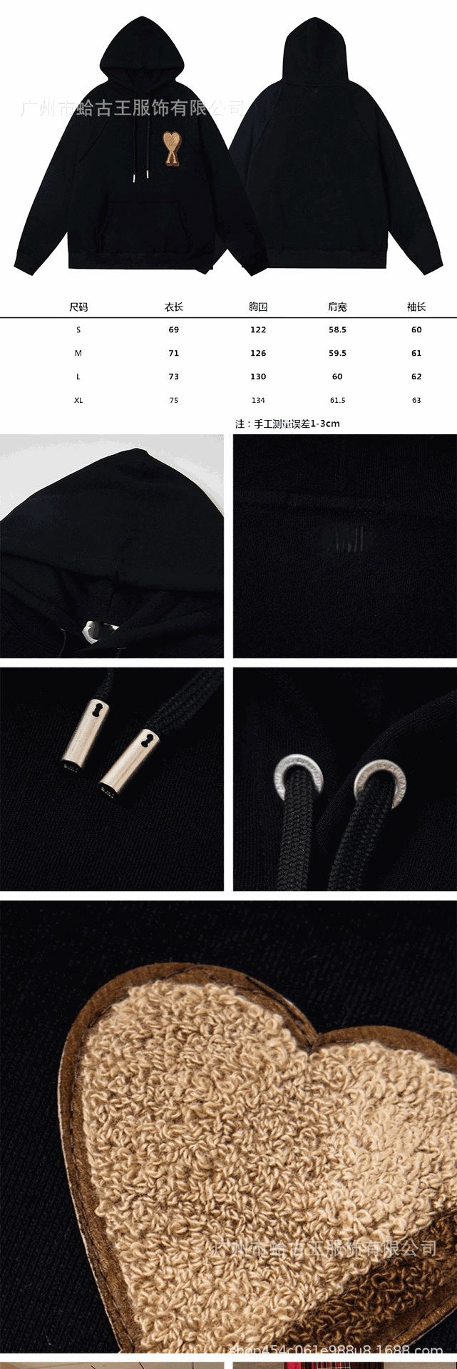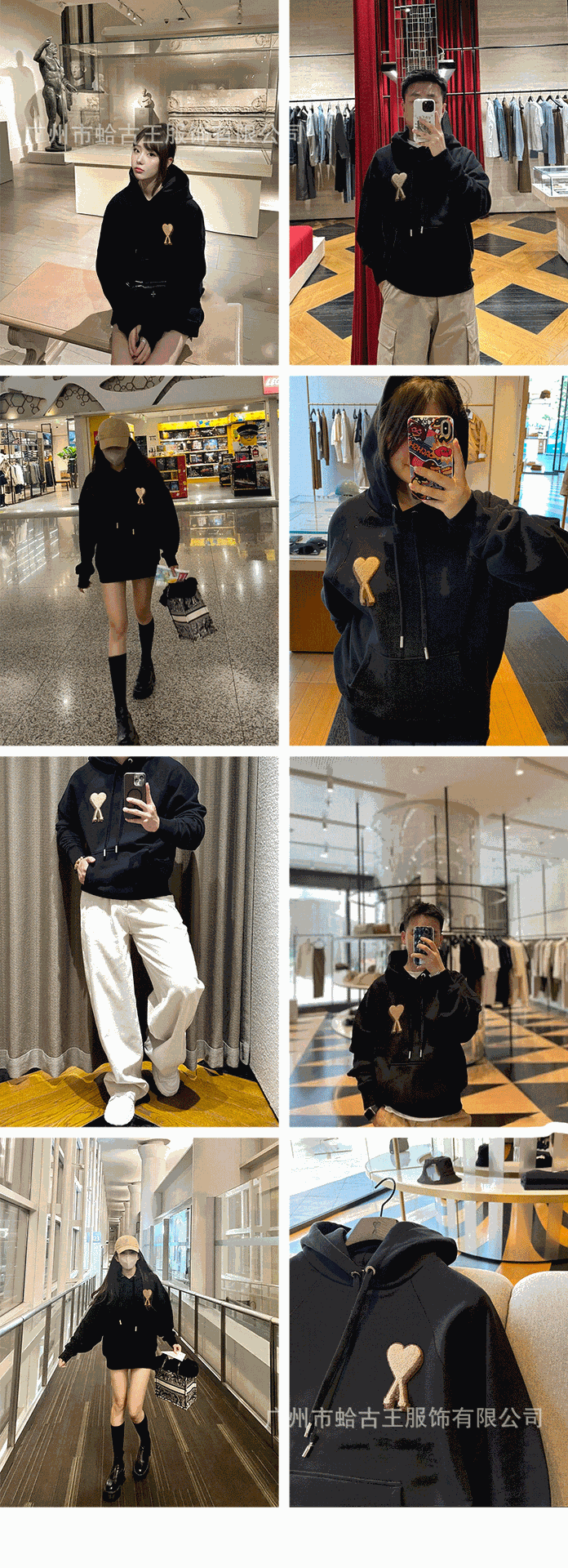 秋冬AMI ANCIENT卫衣小爱心口袋拉链刺绣连帽休闲外套连帽男女款