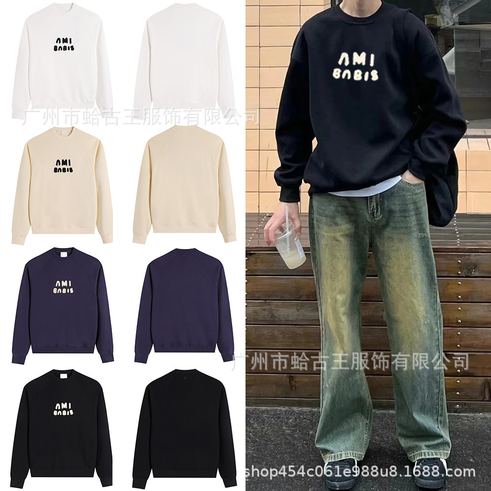 跨境ami卫衣2025年秋冬新款圆领大爱心刺绣男女情侣宽松休闲长袖