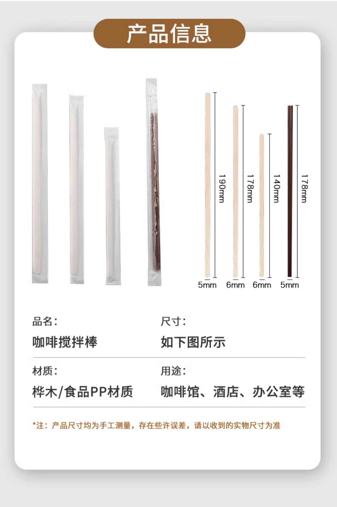 一次性咖啡搅拌棒木质婴儿奶粉搅奶棒独立包装奶茶热饮搅拌棍跨境
