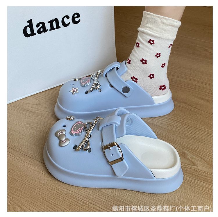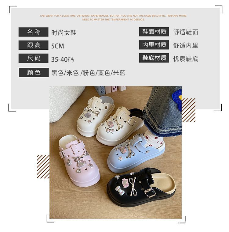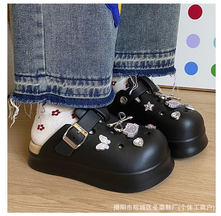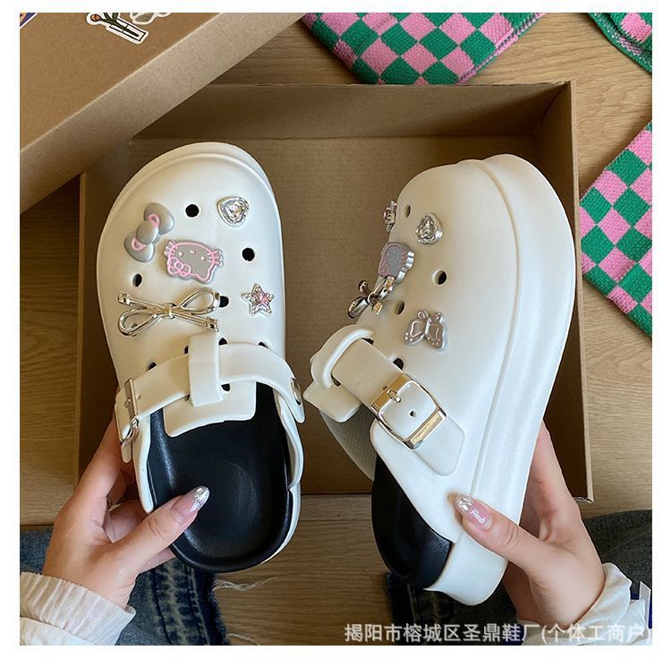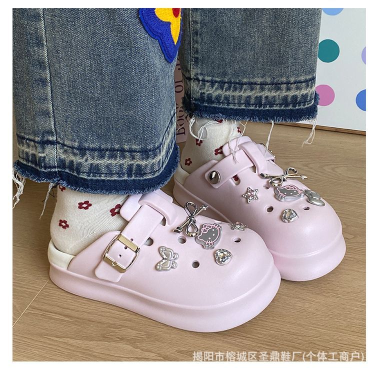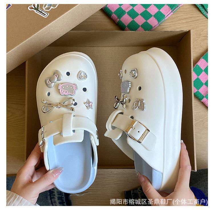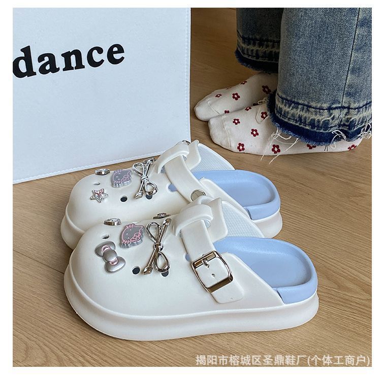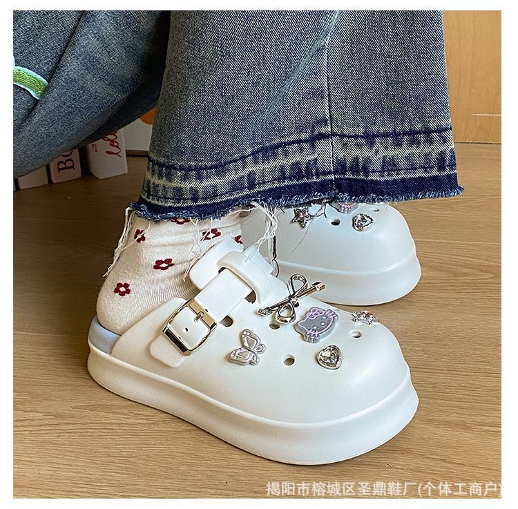 可拆卸高颜值ins百搭小众可爱卡通eva洞洞鞋增高厚底包头凉拖鞋女