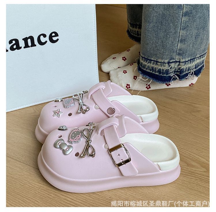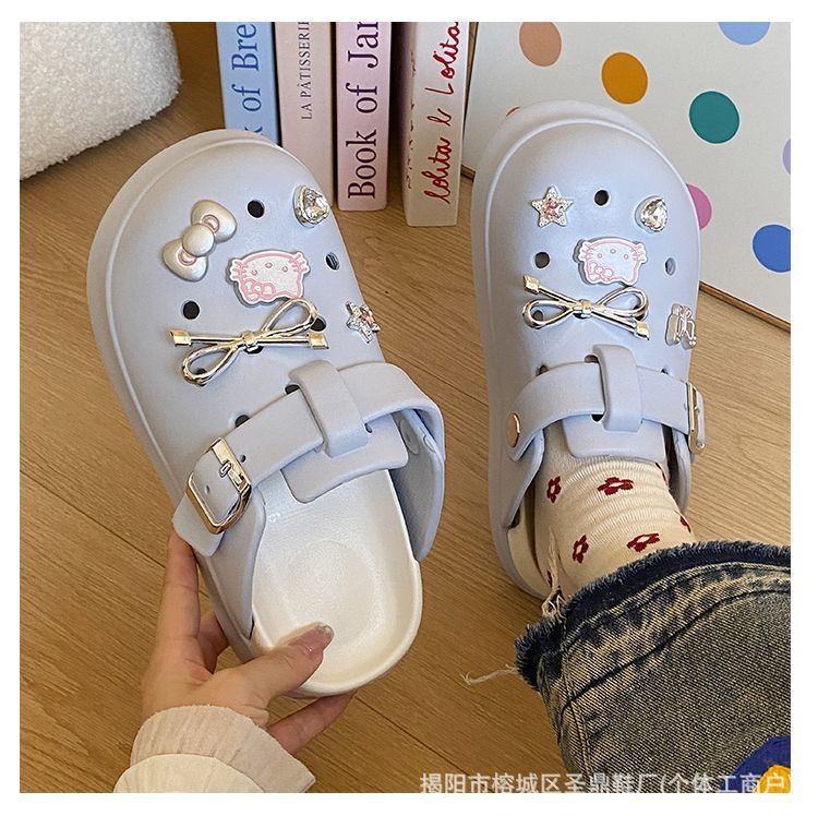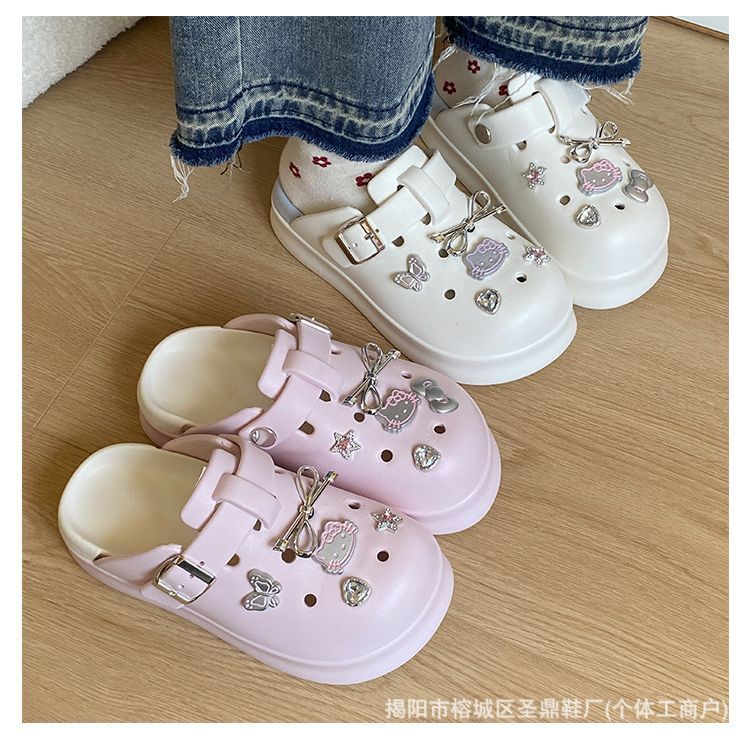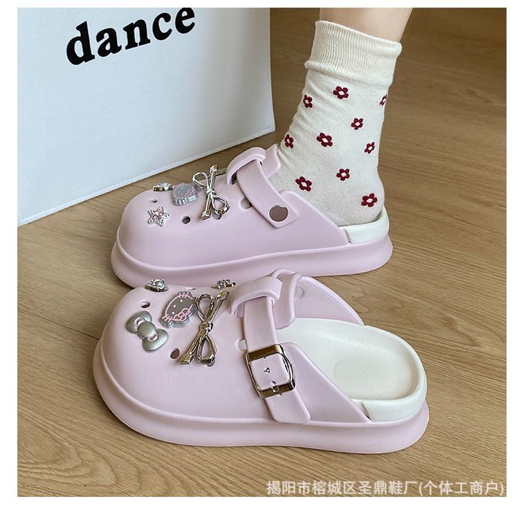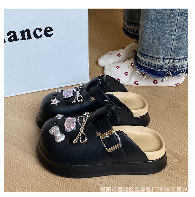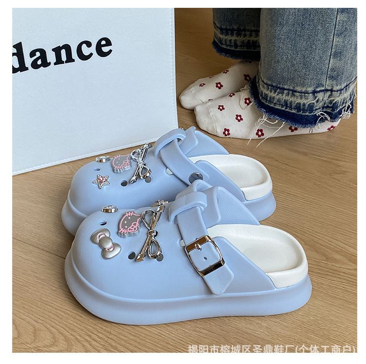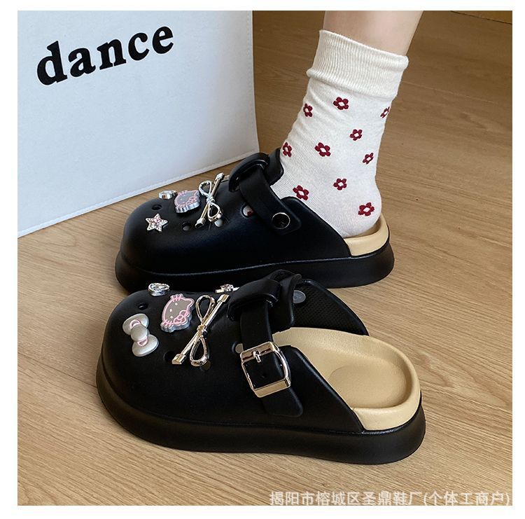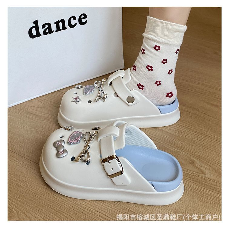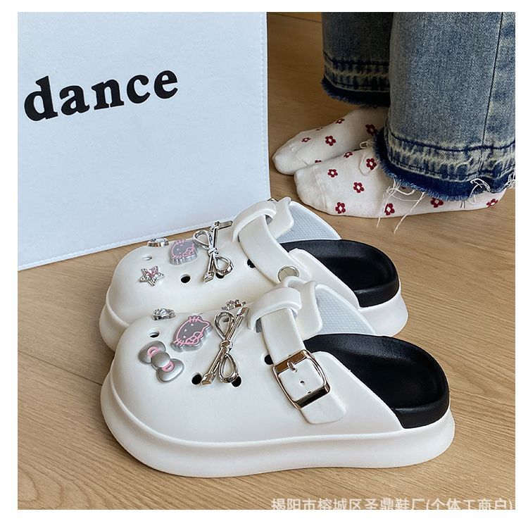 可拆卸高颜值ins百搭小众可爱卡通eva洞洞鞋增高厚底包头凉拖鞋女