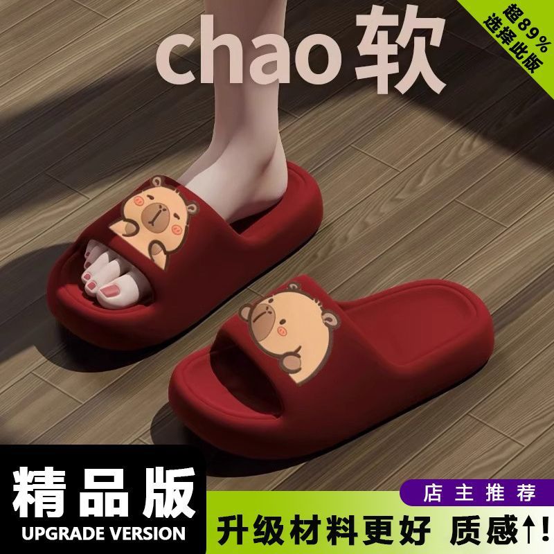 新しいカピバラの干支年用赤いスリッパ、女性用、かわいい、カップル、結婚式、室内、家庭用、滑り止め、軽量スリッパ