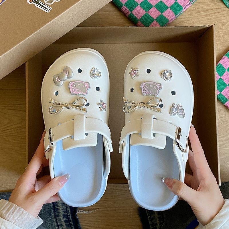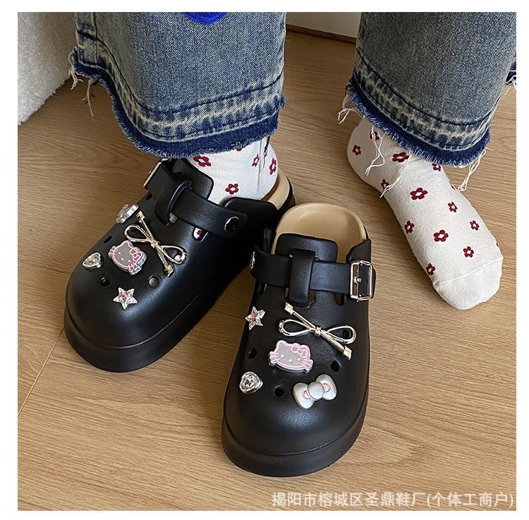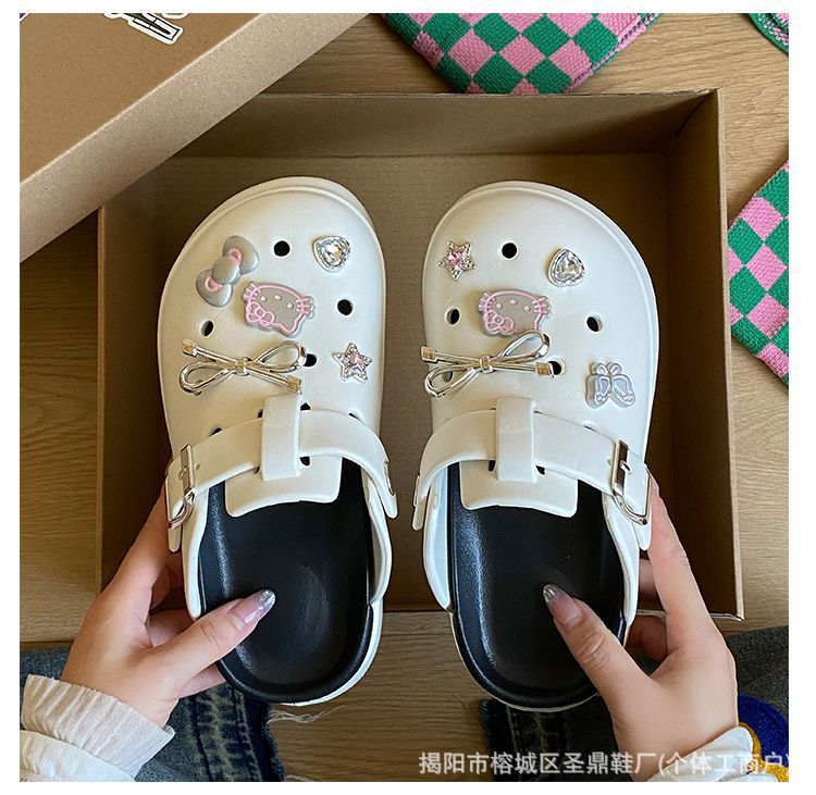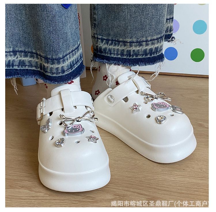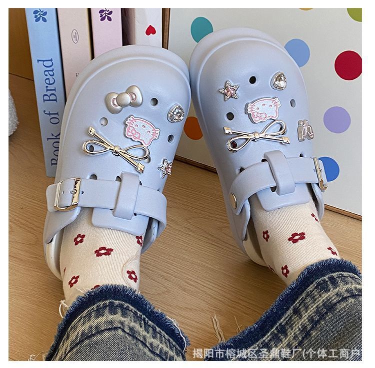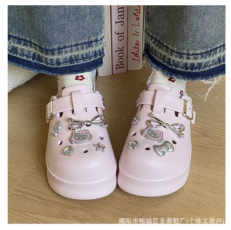 kt猫洞洞鞋女款夏季新款外穿防滑卡通eva包头沙滩一脚蹬凉拖鞋女
