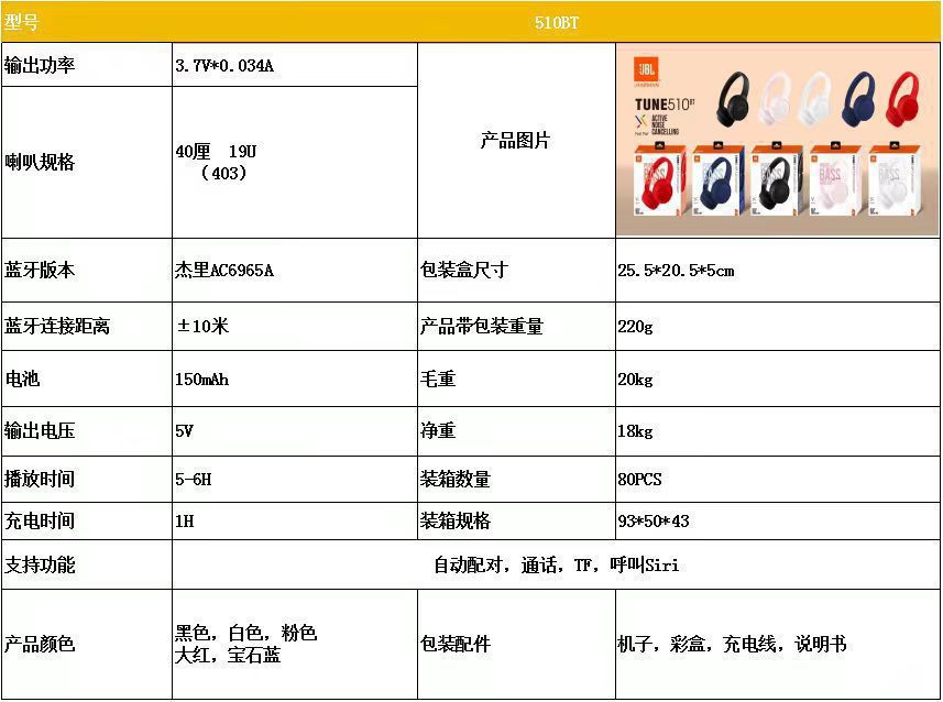 颜色 黑色JBL-510,粉色JBL-510,蓝色JBL-510,白色JBL-510,红色JBL-510
