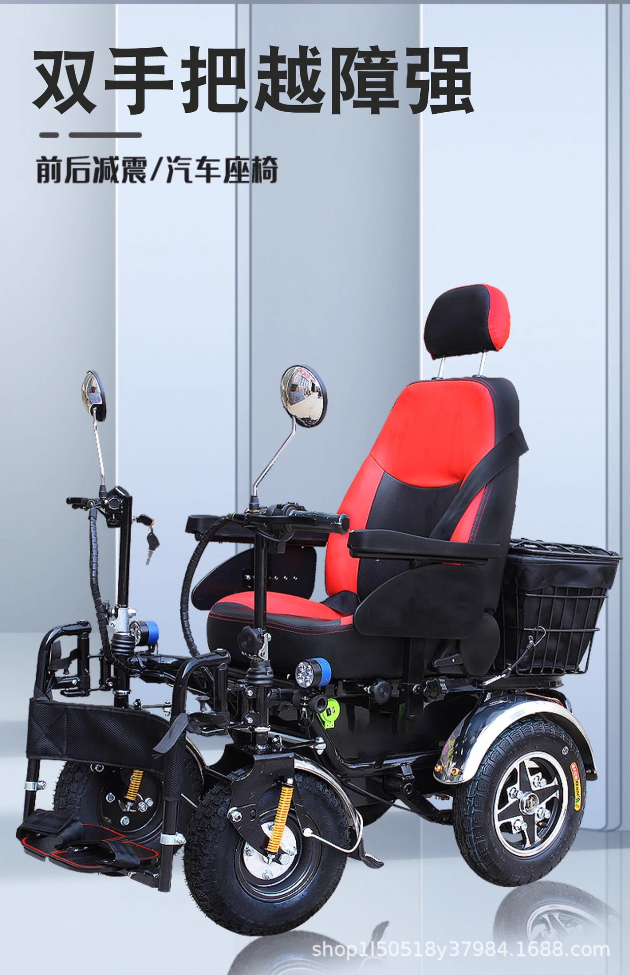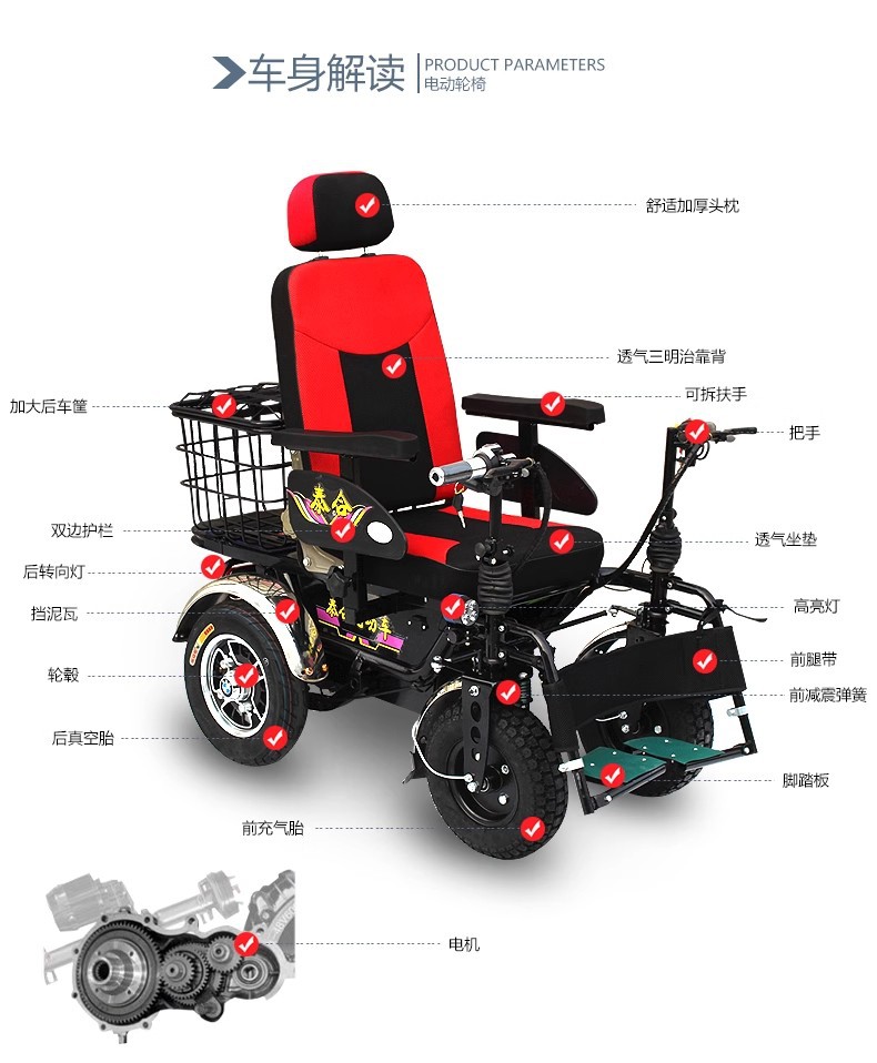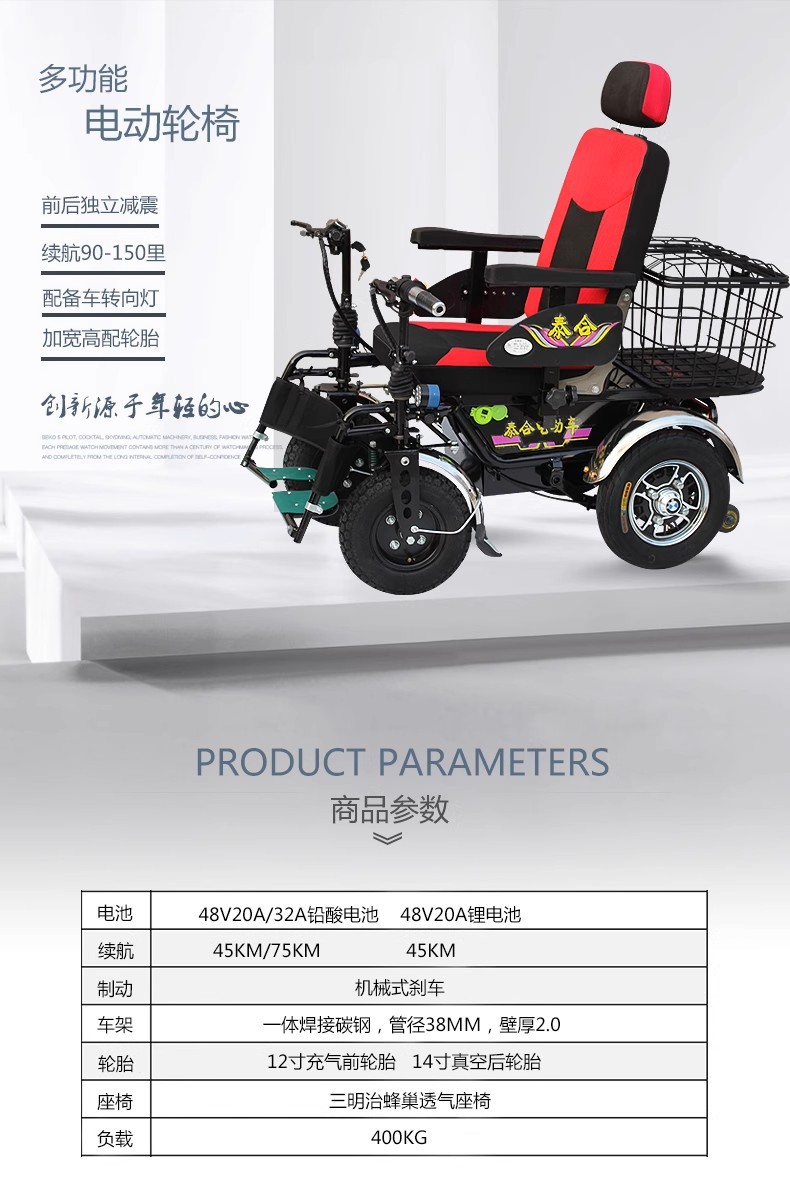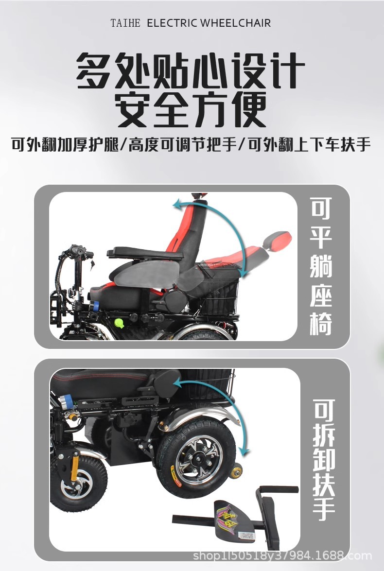 泰合智能电动轮椅老年人残疾人四轮代步车双把手越野型减震多功能