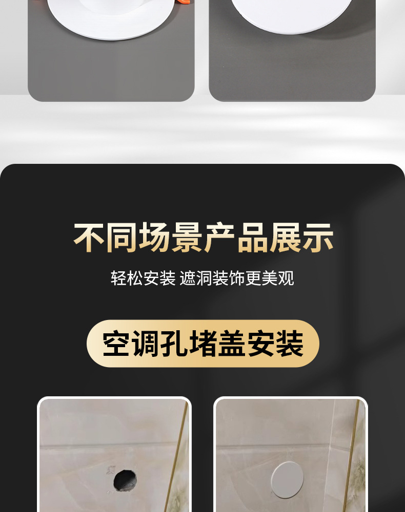 墙洞装饰空调眼圆形遮丑盖板筒灯孔玻璃烟道孔遮挡神器空调口封堵