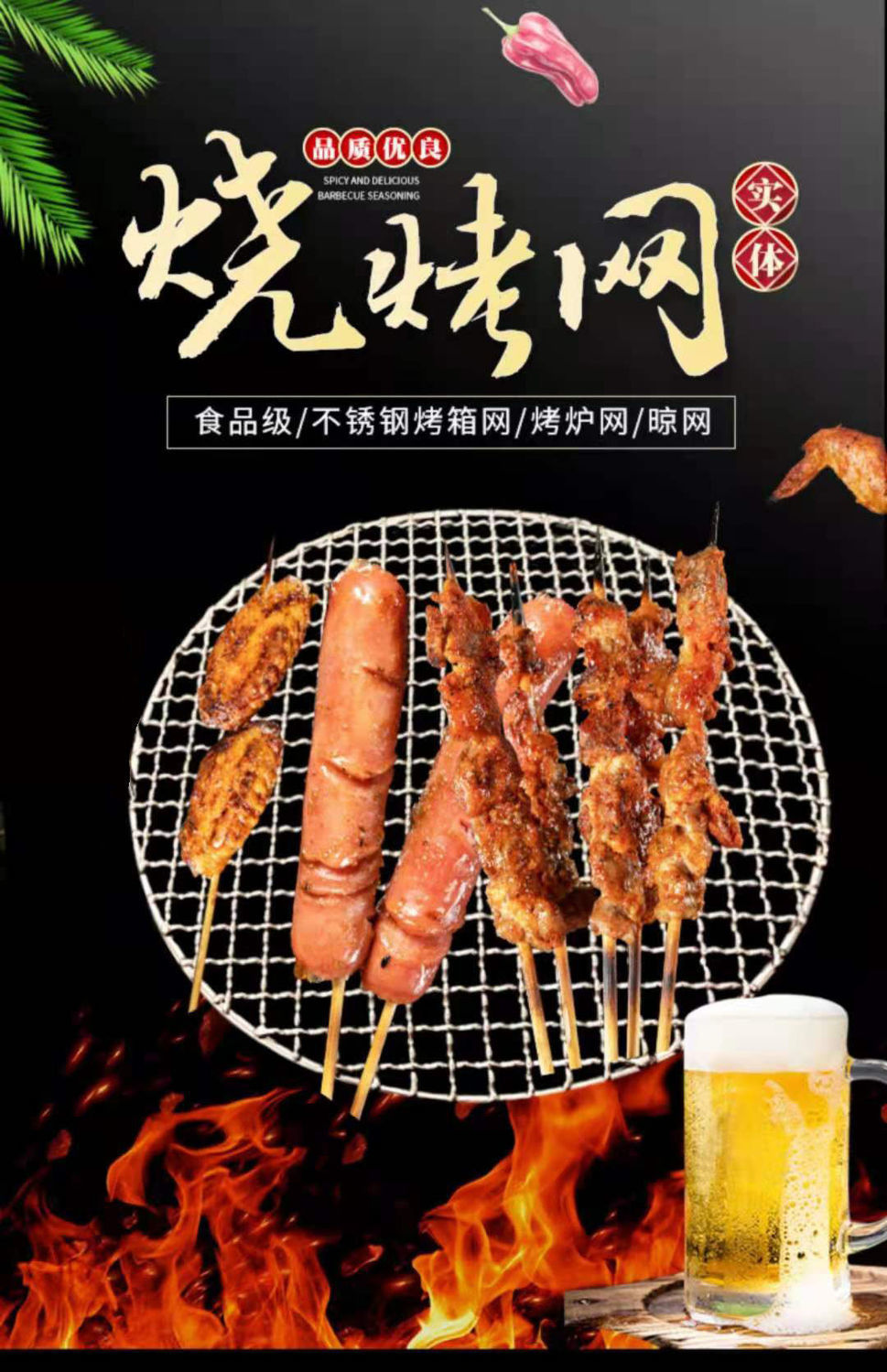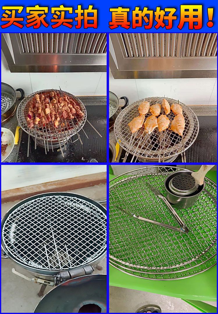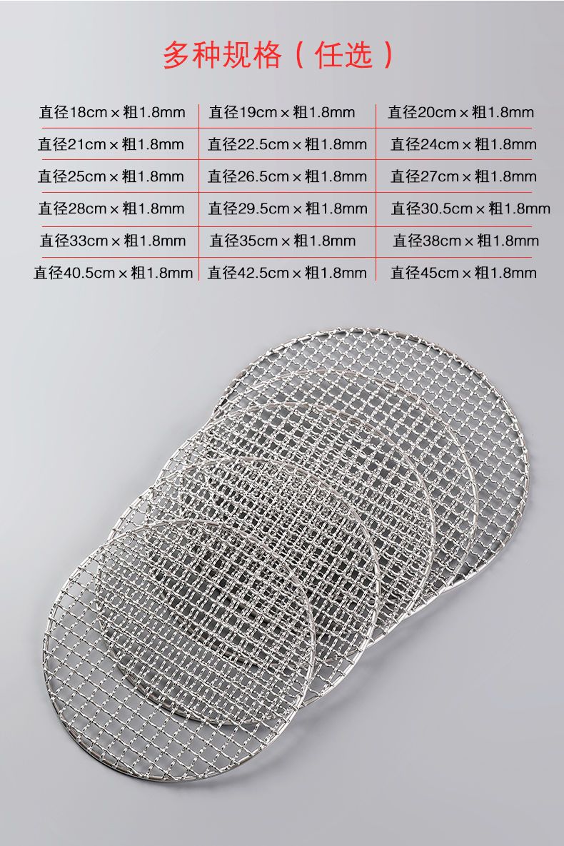 不锈钢304圆形烧烤网围炉煮茶烤网加厚烤肉篦子加粗烧烤网熏肉网