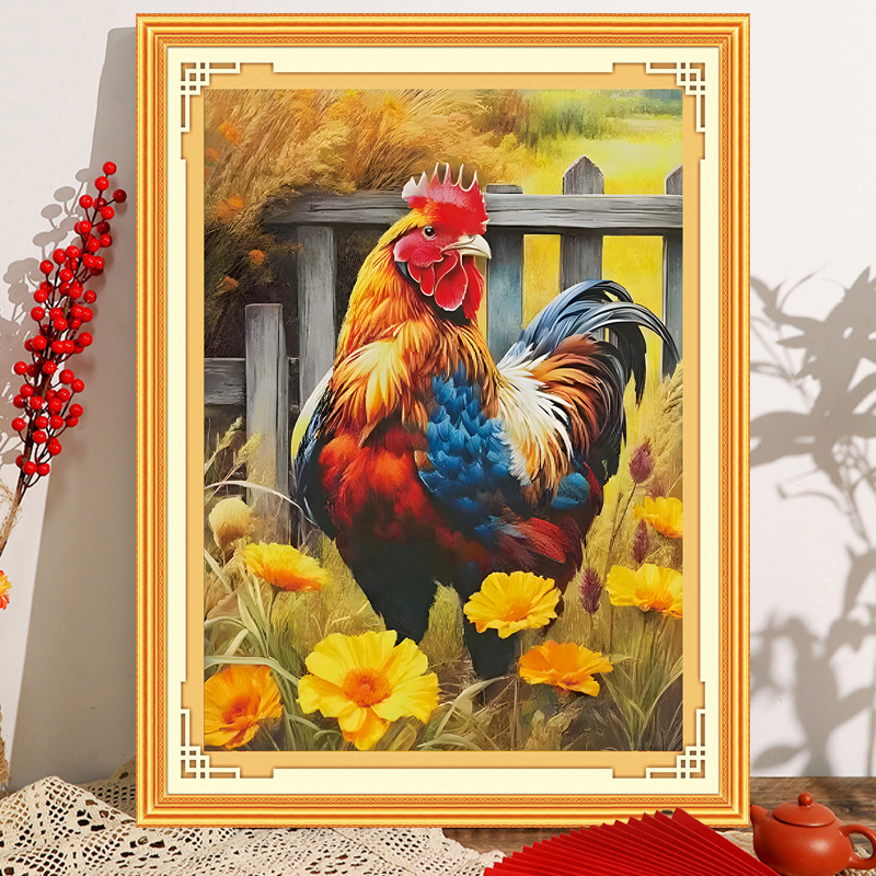 モナリサ十字刺繍2025新型鉢鶏シンプル現代プリントセット縦版玄関動物糸刺繍