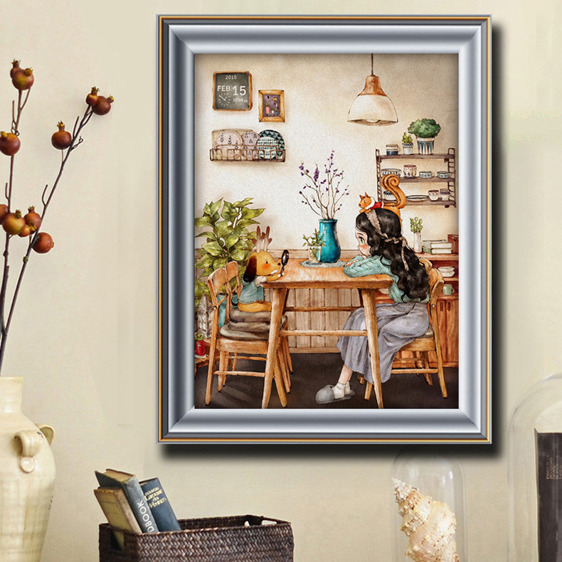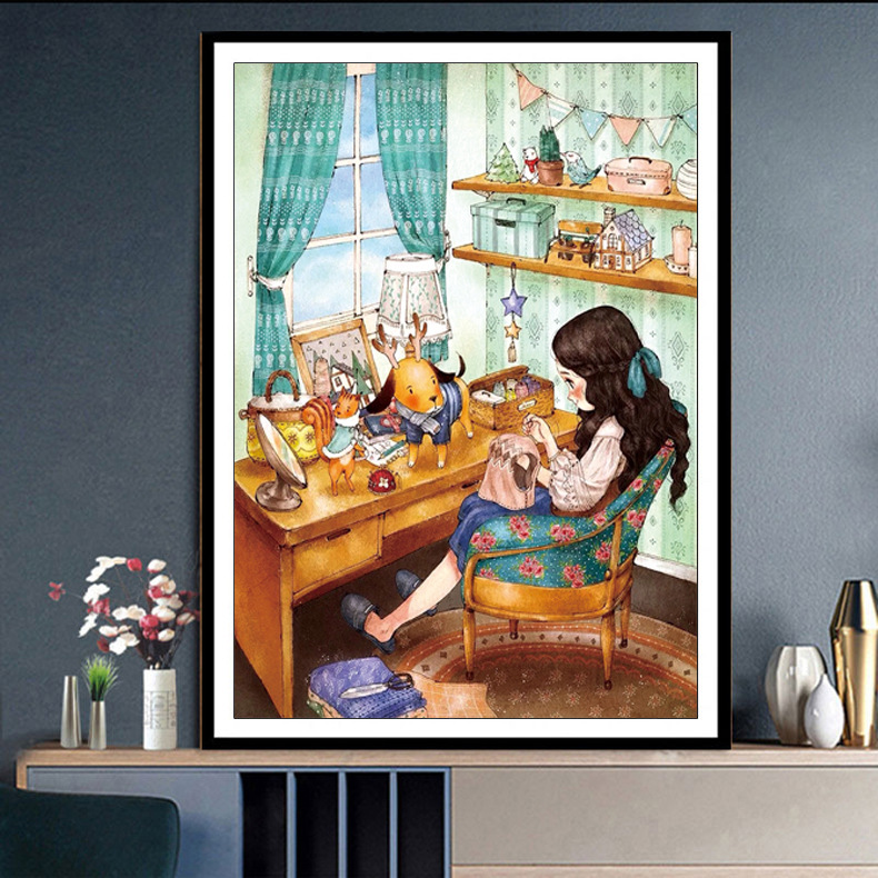 モナリサ十字刺繍女の子リビングルーム森少女アフタヌーンティー愛女の子ベッドルームいっぱい刺繍キャラクター漫画