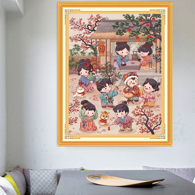 百福斉聚福字十字刺繍2025新型線刺繍客間寝室縦版玄関簡単新手作業自己刺繍