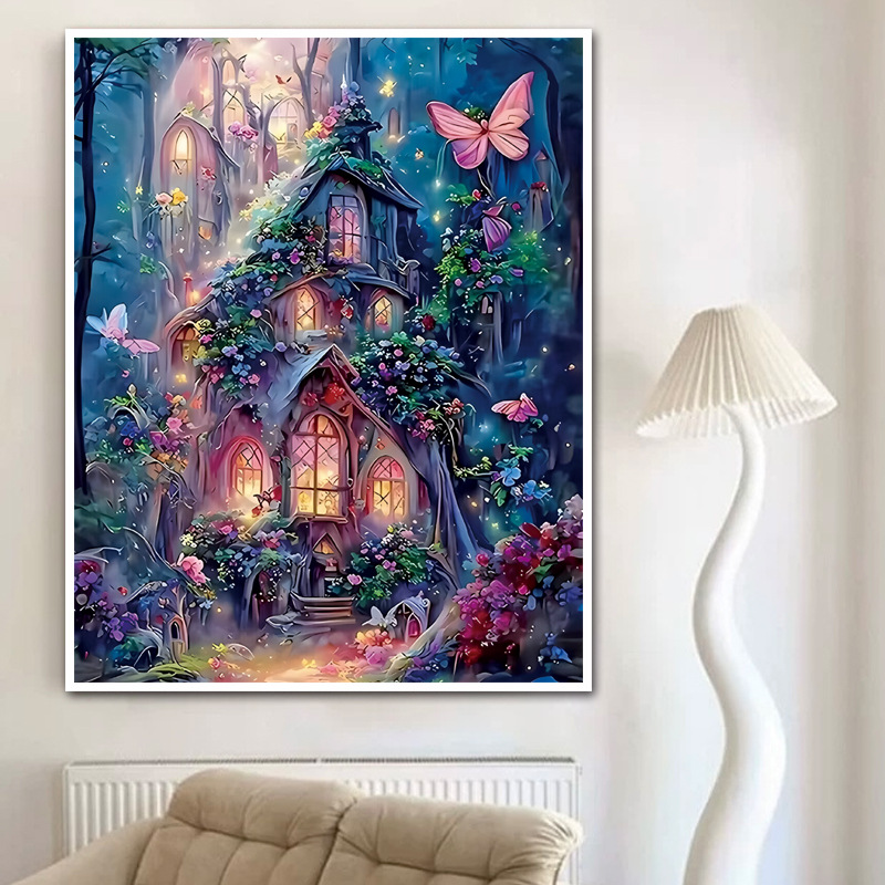 ドリームハウスクロスステッチ 2025 新しい刺繍リビングルームとレストラン蝶風景花手作り自己糸刺繍