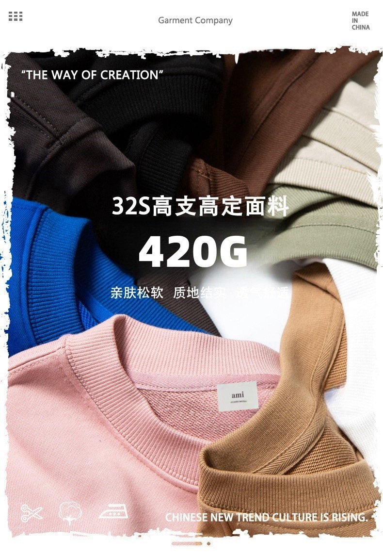 AMI&EASY高品质潮牌秋季圆领爱心刺绣男士卫衣百搭宽松舒适青年