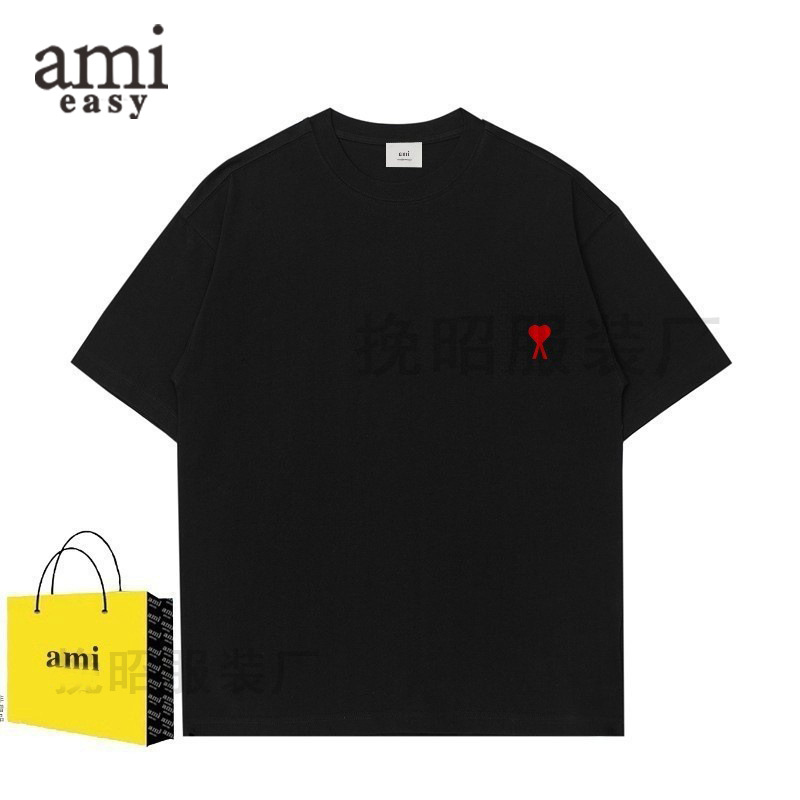 AMI&EASY 正しいバージョンのクラシックな小さな愛の刺繍半袖 Tシャツメンズ夏のトレンディなブランドルーズカジュアル多用途 Tシャツ