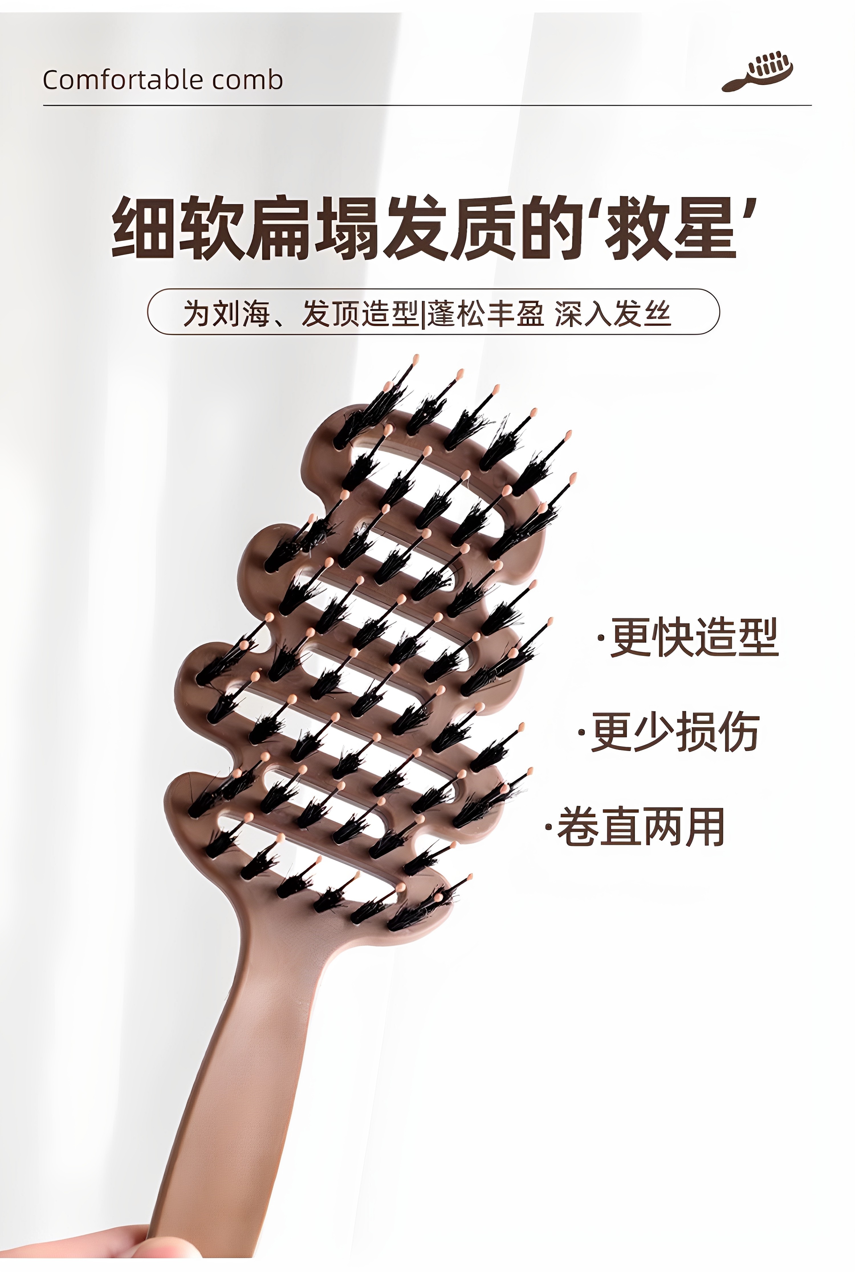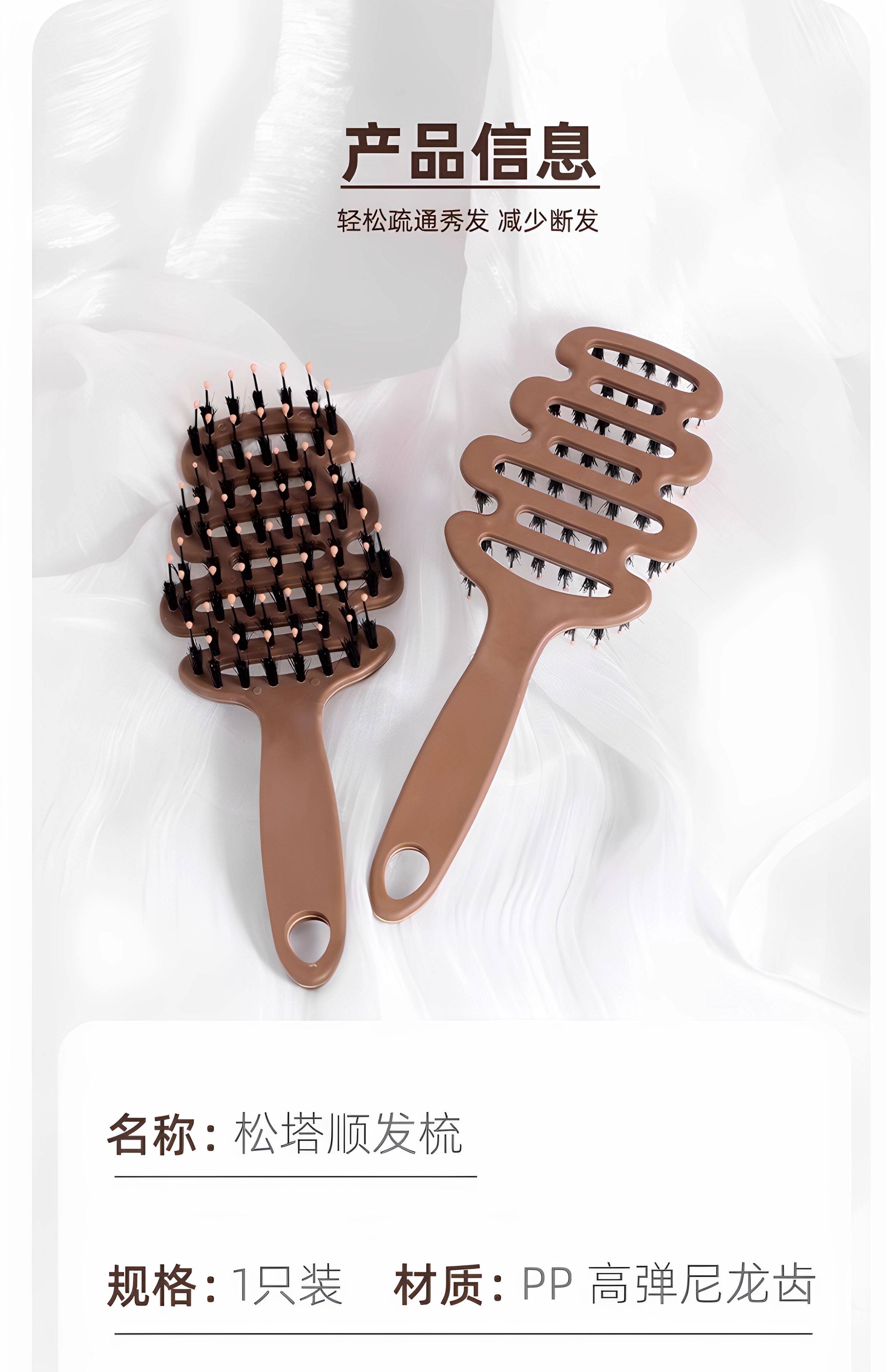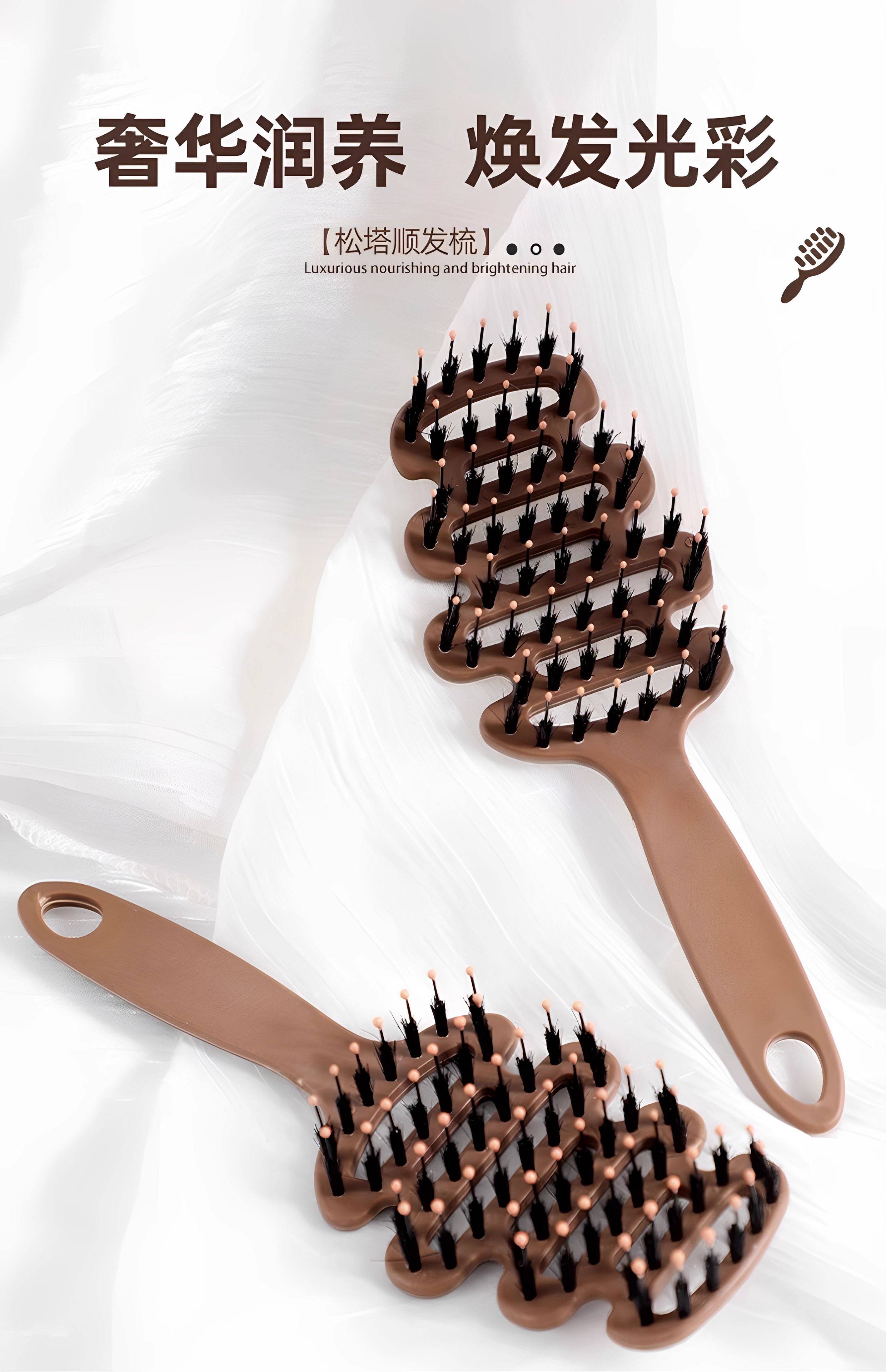 【电商爆款】松塔猪鬃梳发顶蓬松顺发梳护发排骨梳网红高颅顶神器