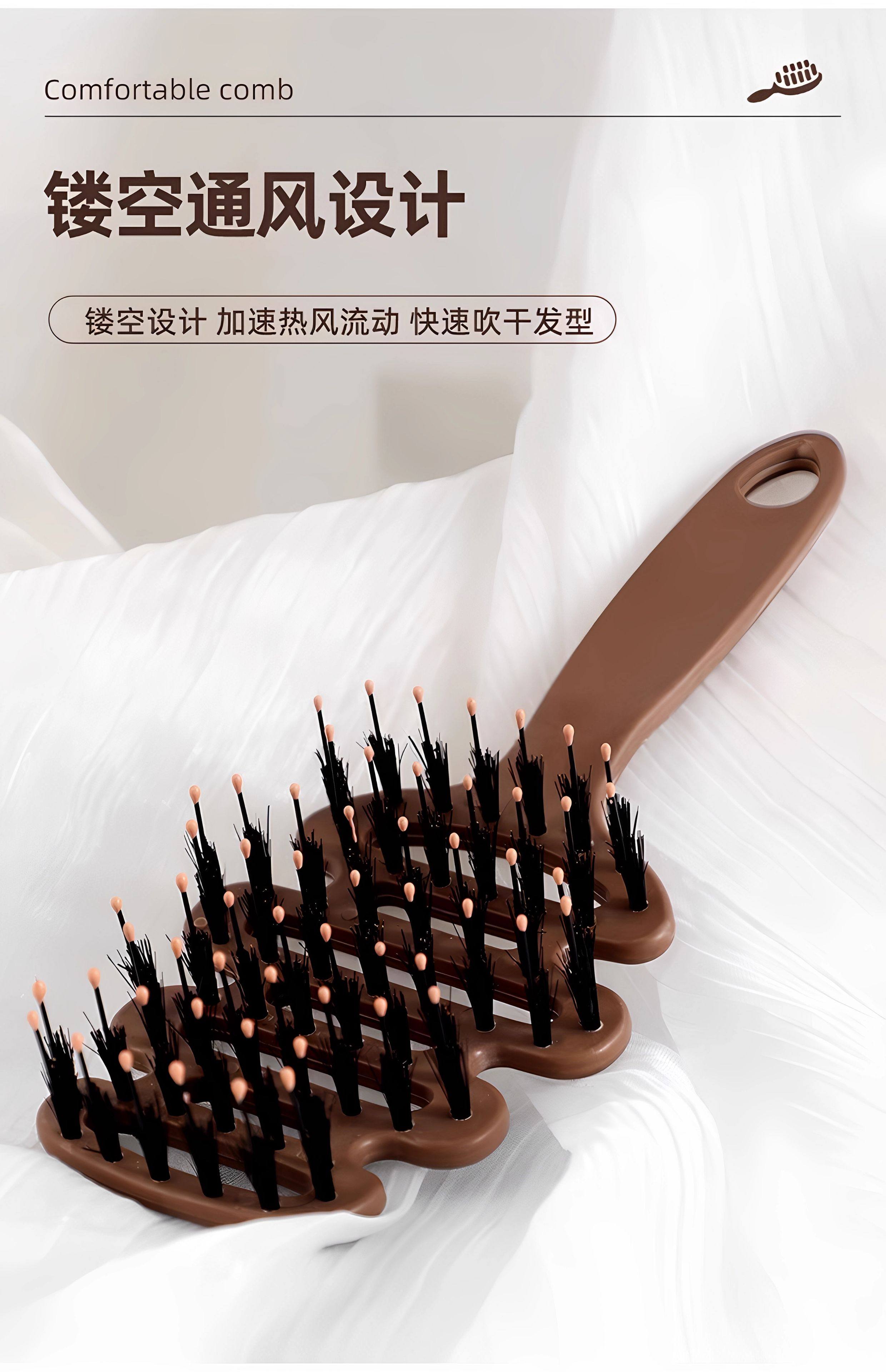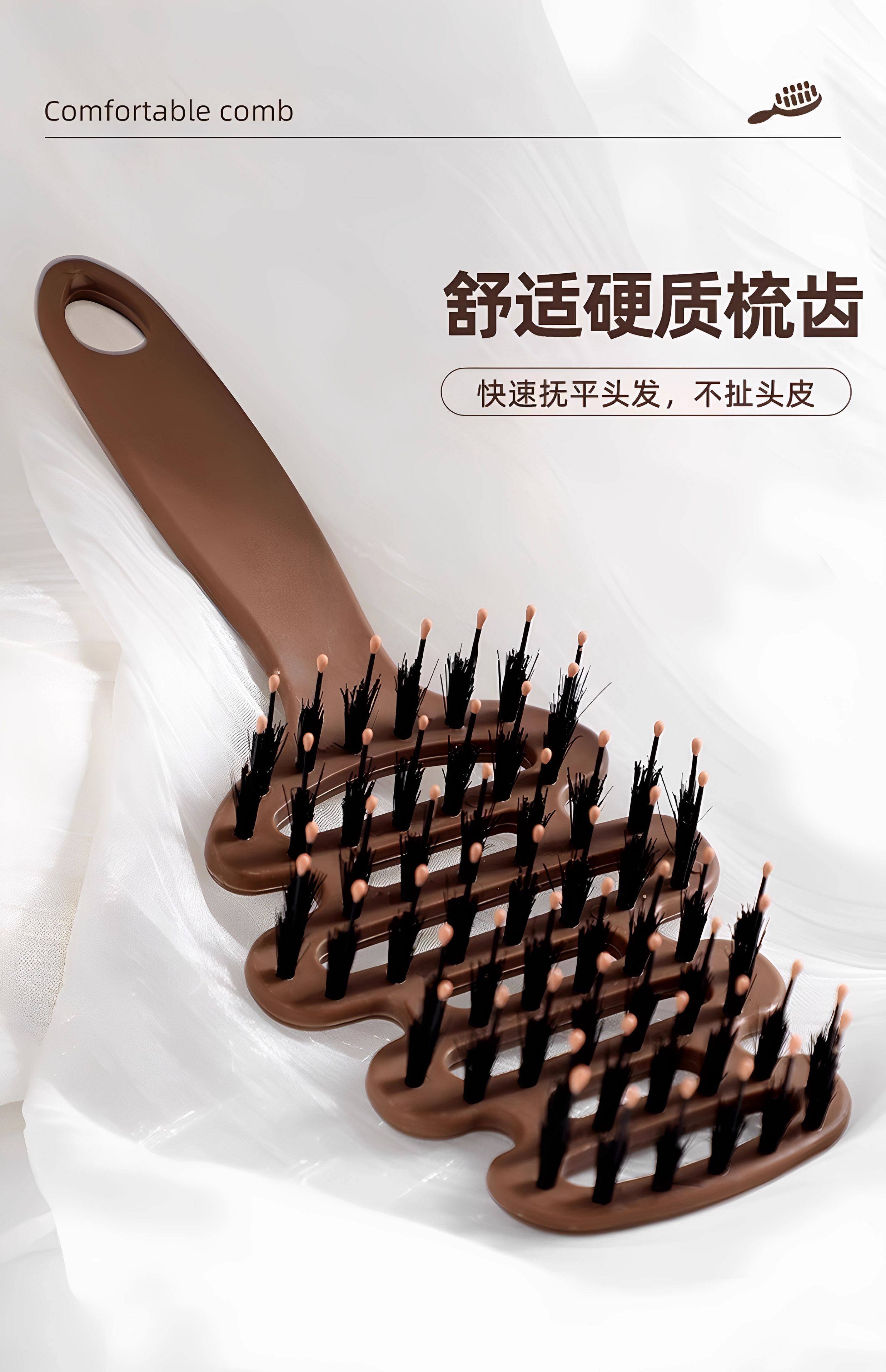批发猪鬃顺发梳蓬松猪鬃毛松塔梳塑料镂空排骨梳软齿卷发梳子