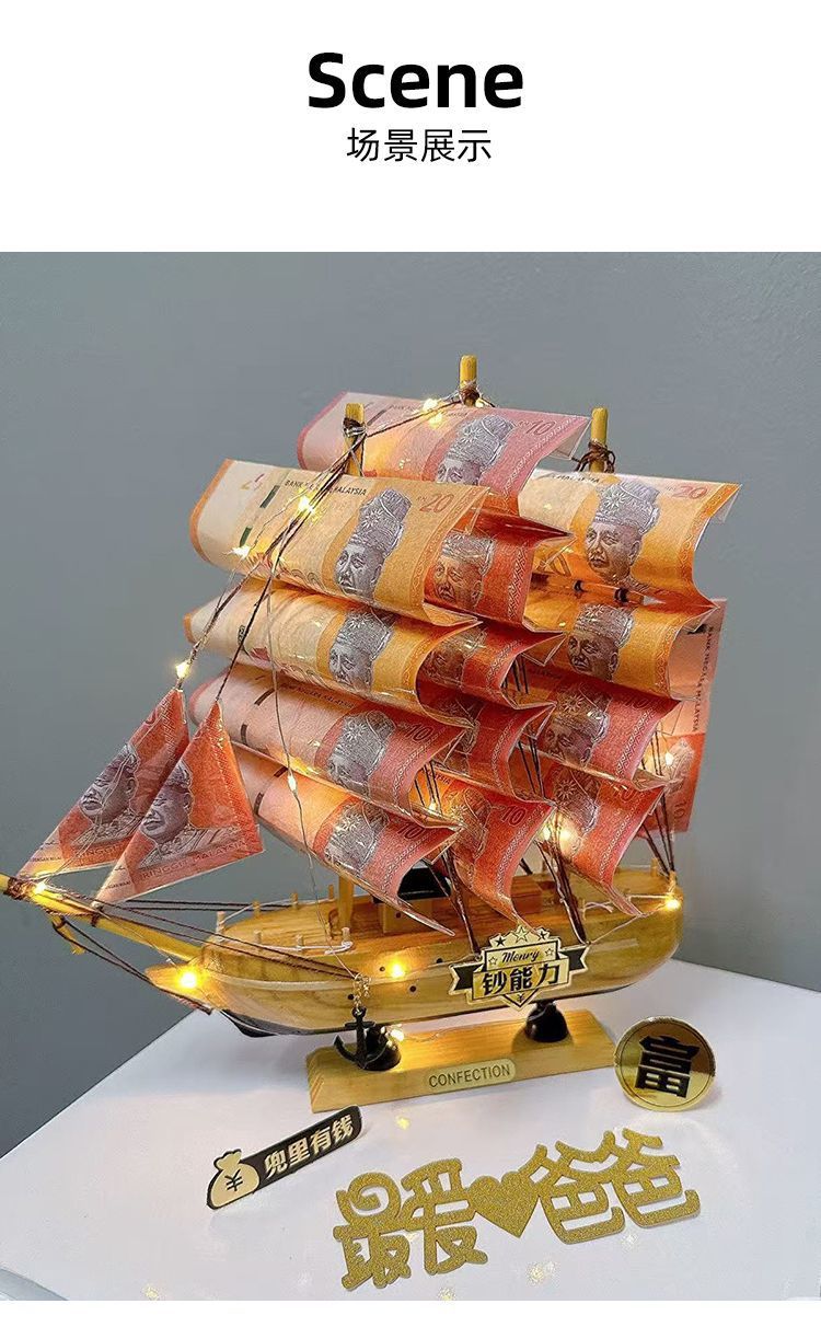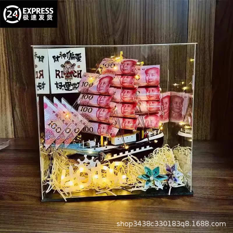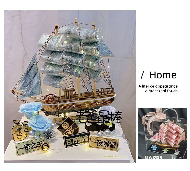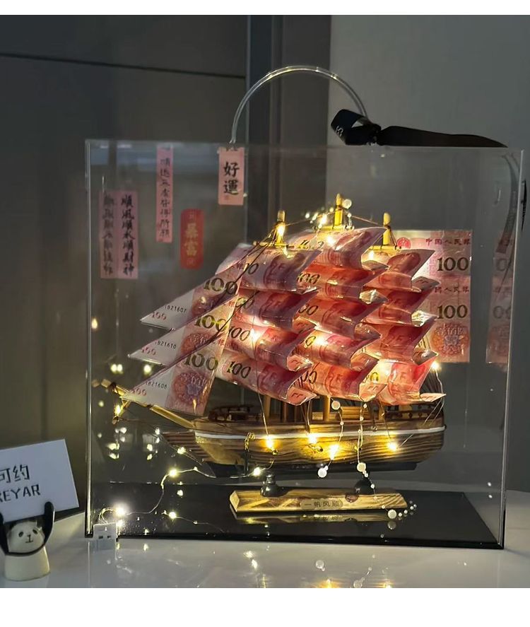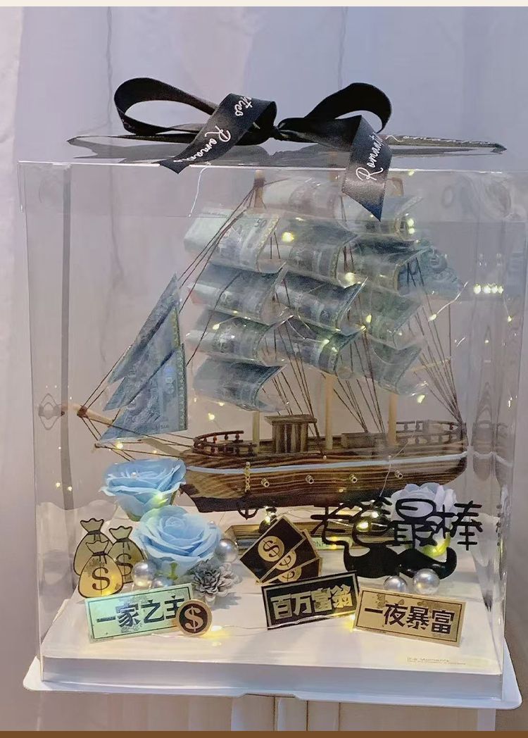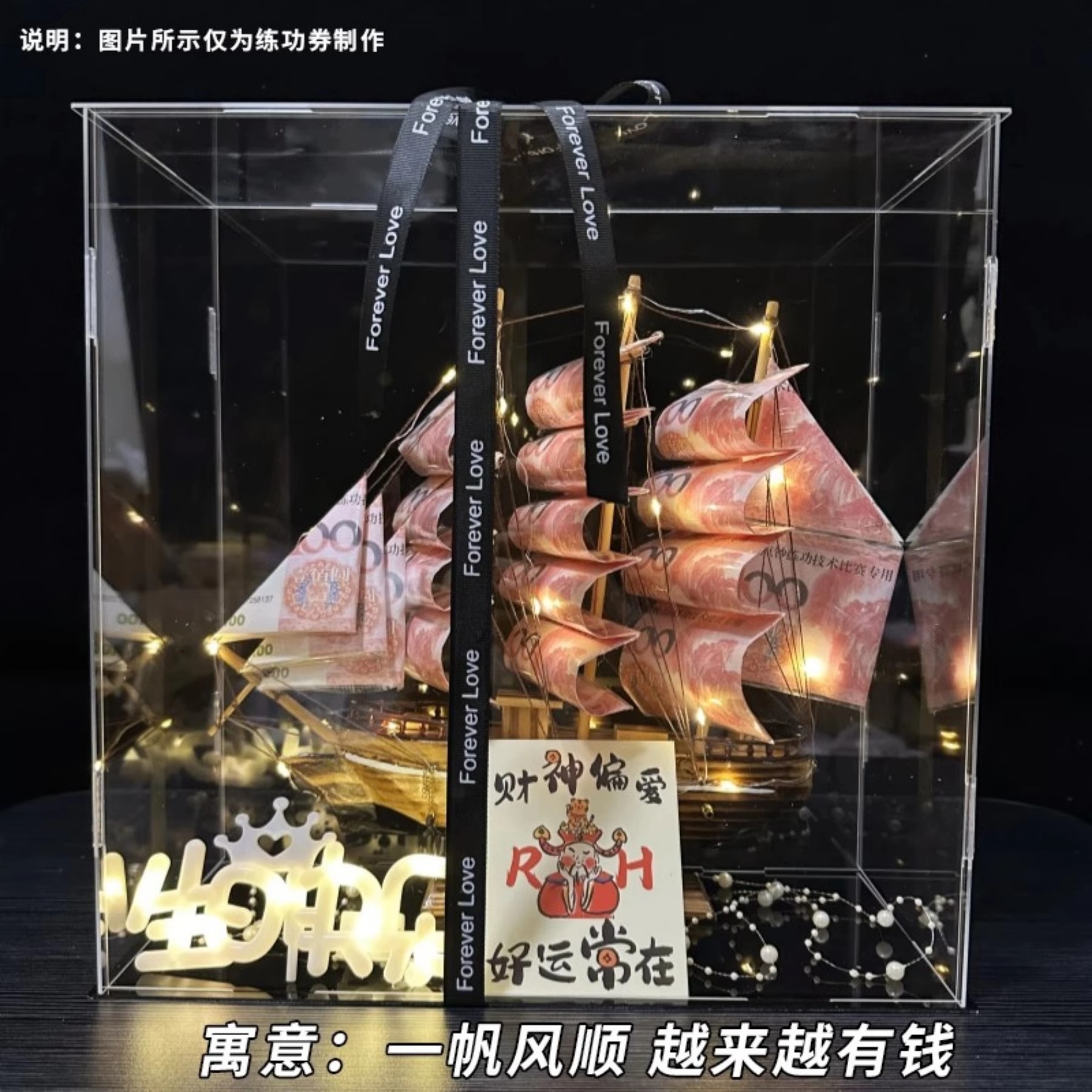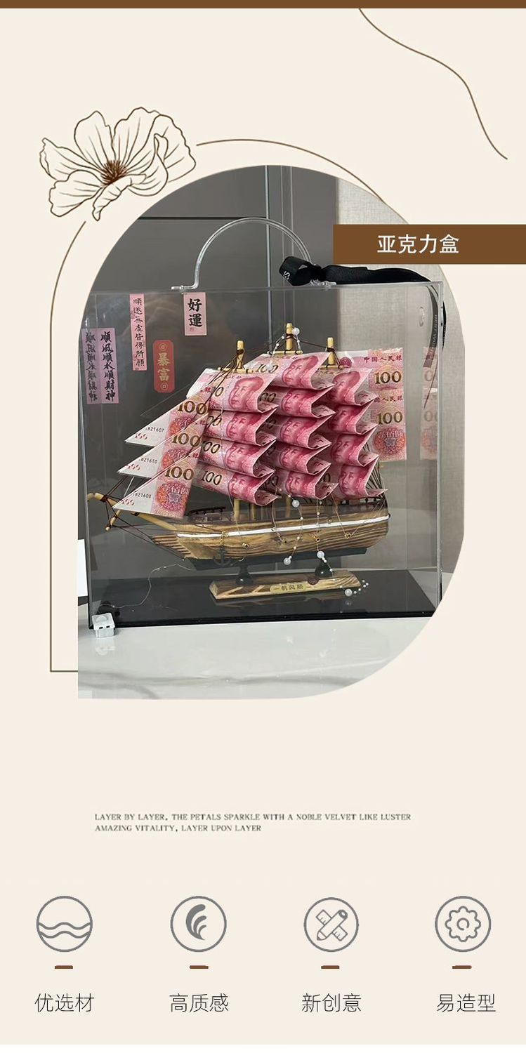 一帆风顺有钱花礼盒帆船摆件钱折花束亚克力乔迁送钱实用生日礼物