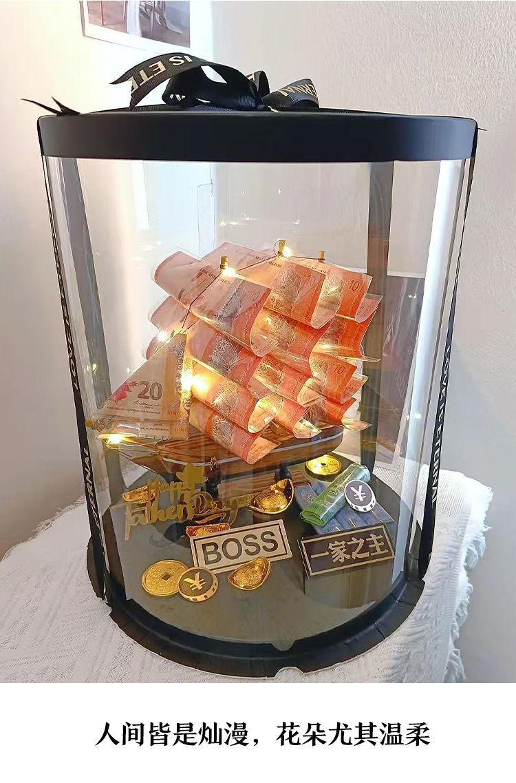 父亲节一帆风顺帆船现金有钱花diy材料包手提亚克力礼物花店花艺