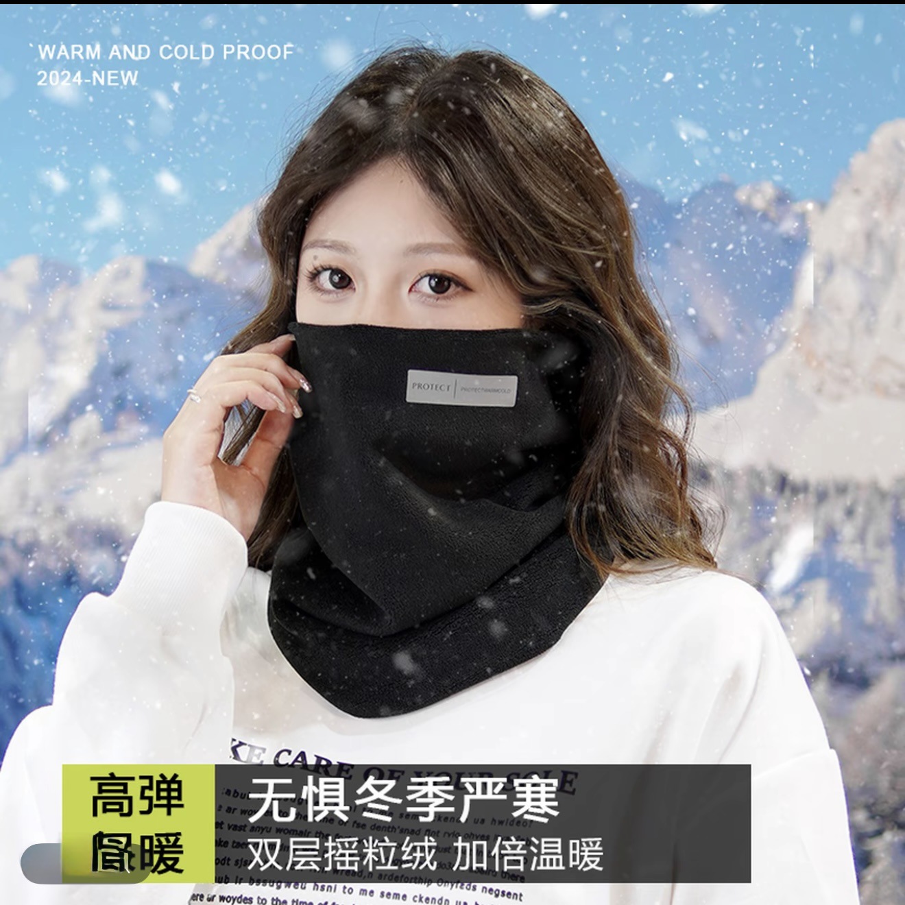秋冬季澳绒保暖口罩磨毛拼接男女高颜值冬季防风面罩无痕澳绒口罩