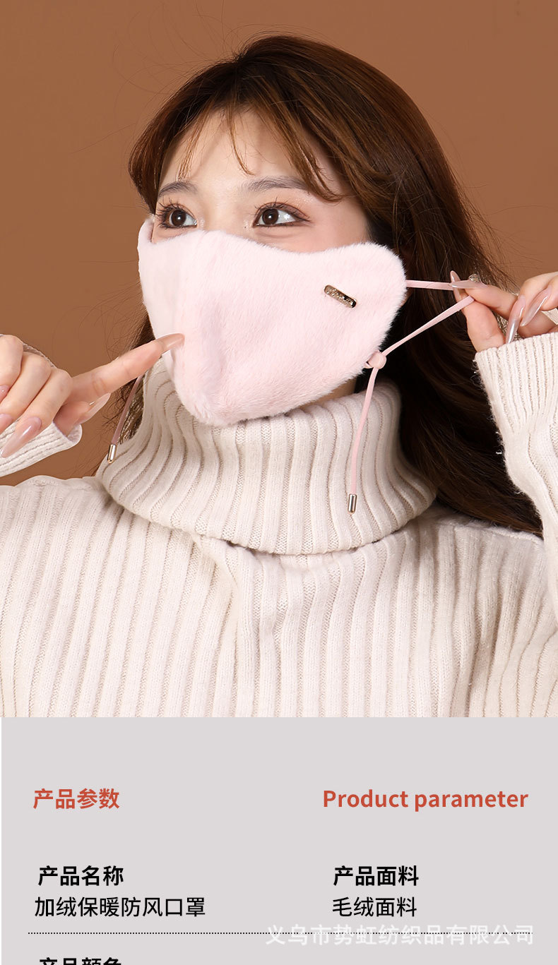 竞加高颜值冬季护眼角口罩防风防寒秋冬保暖加绒加厚兔毛面罩