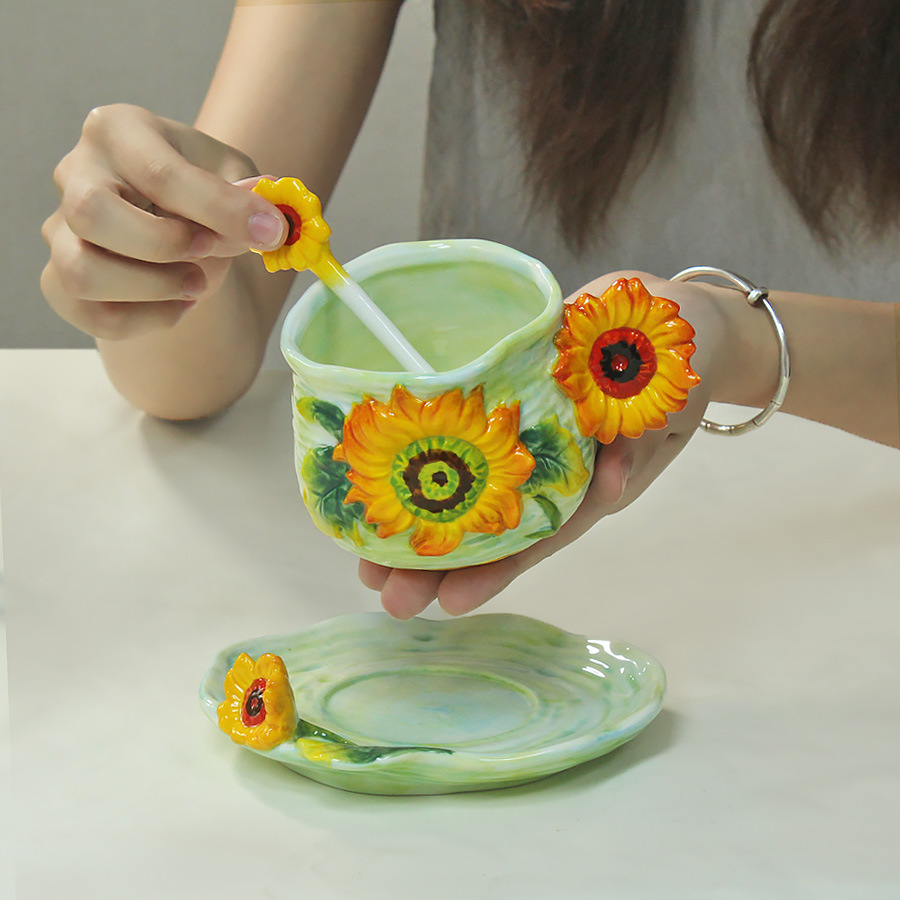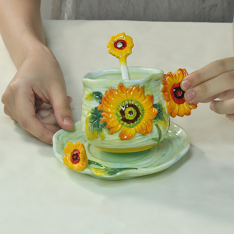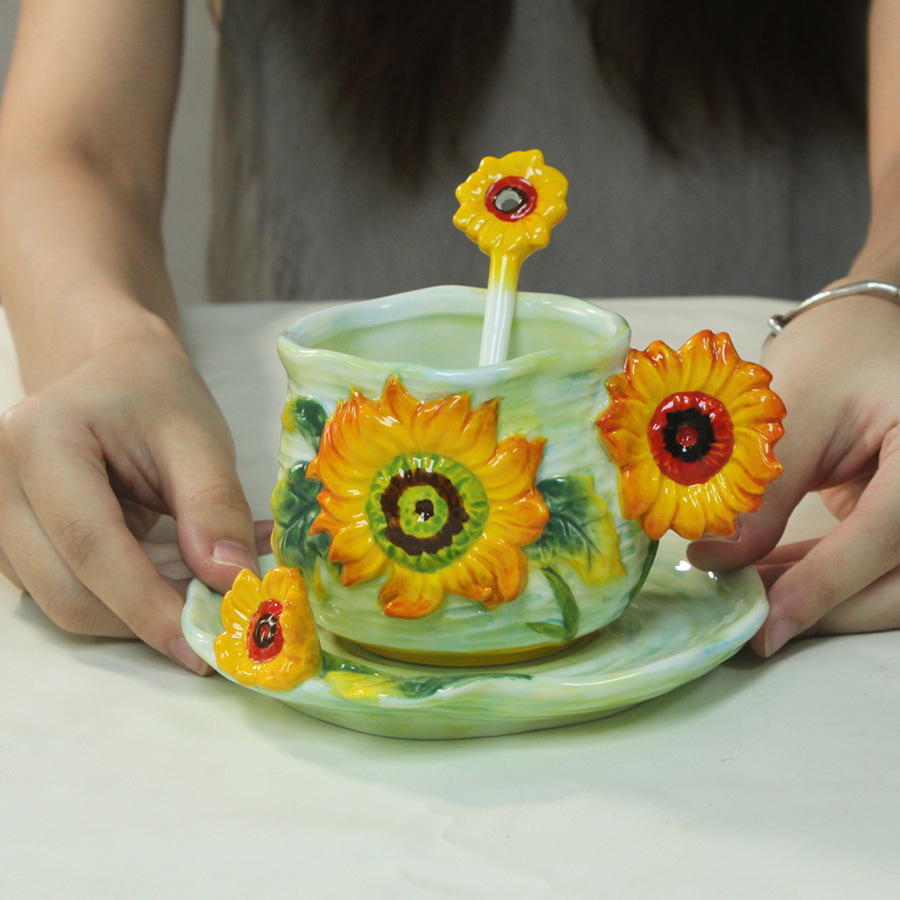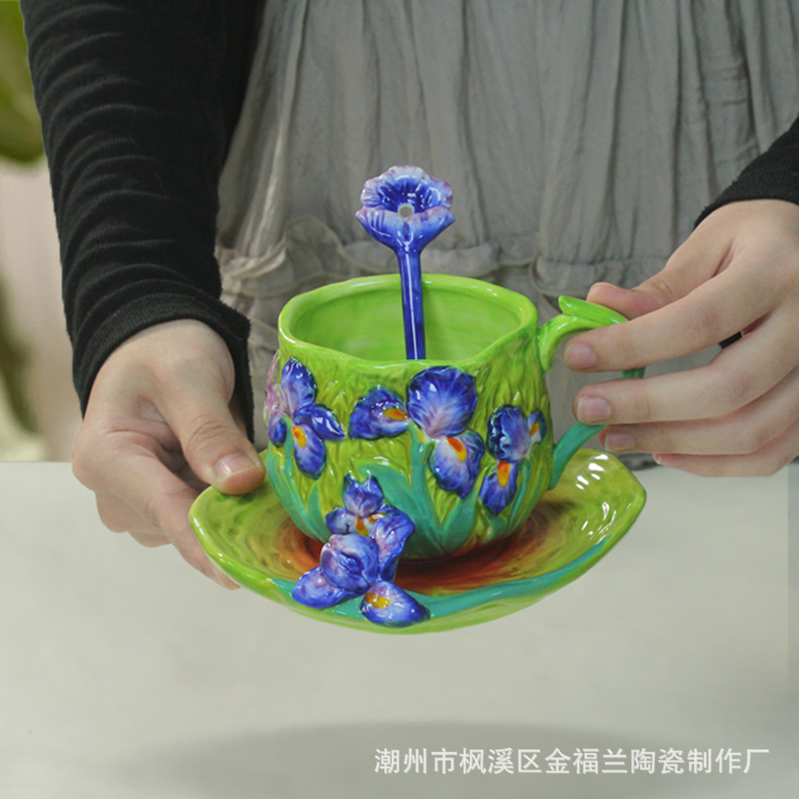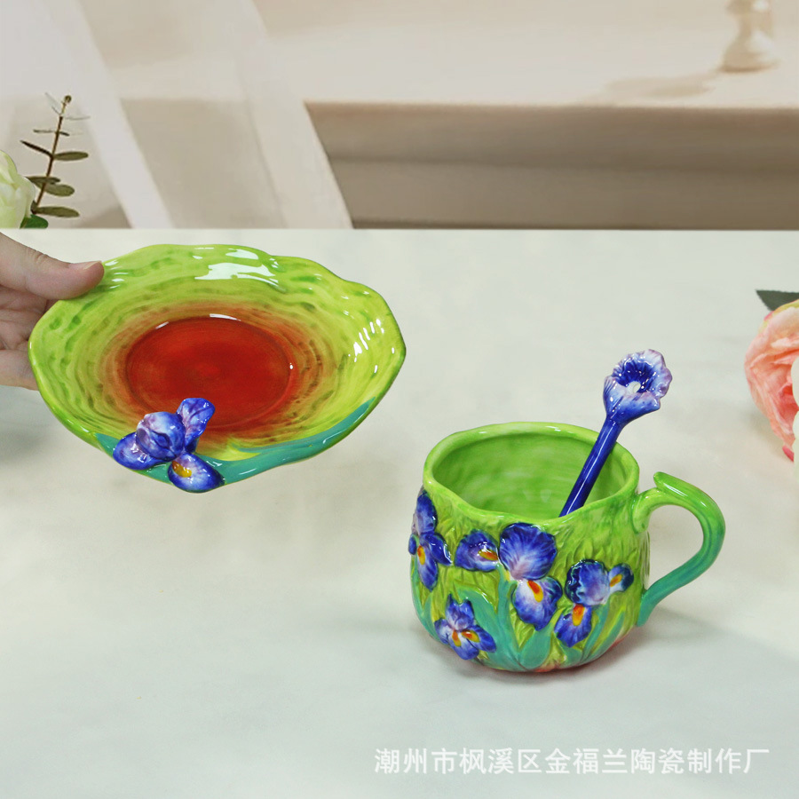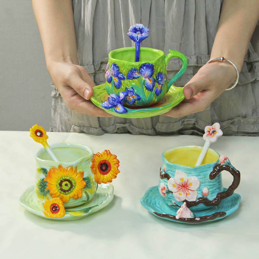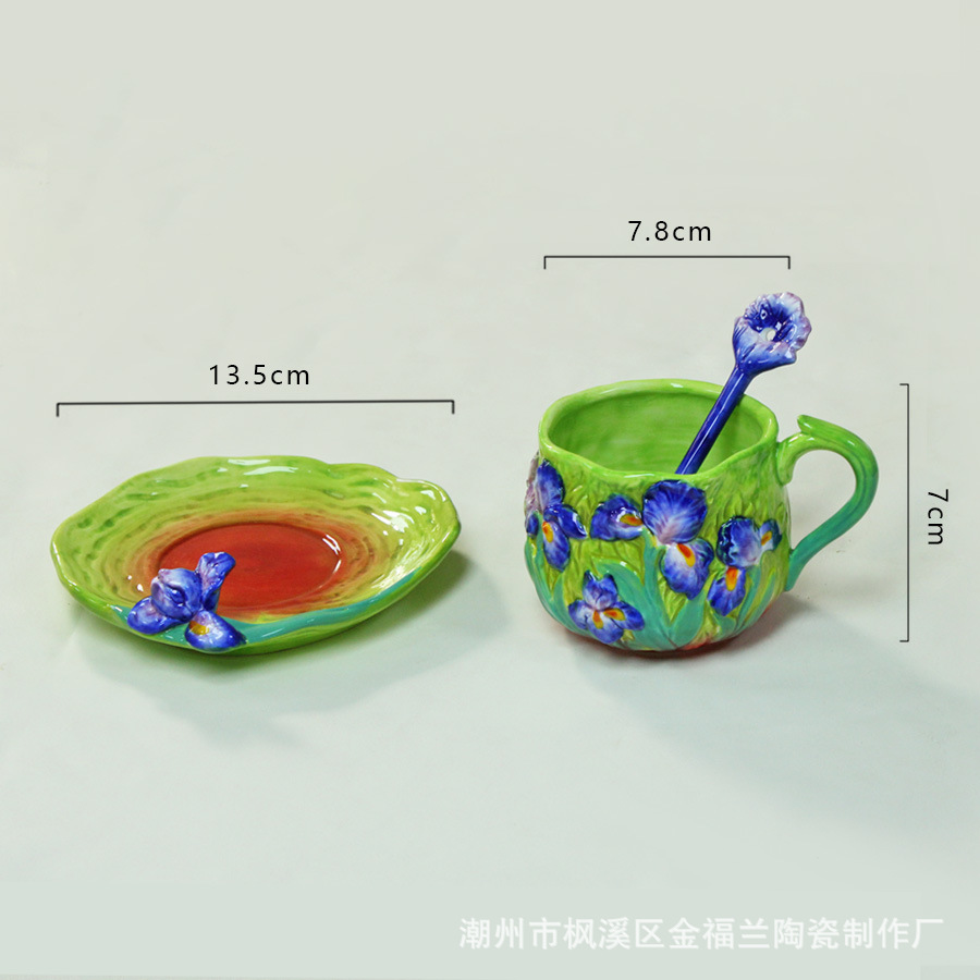 颜色 星空咖啡杯碟,向日葵咖啡杯碟,杏花咖啡杯碟,鸢尾花咖啡杯碟