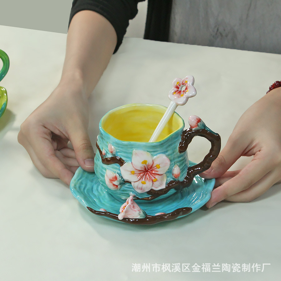 金福蘭精致高颜値薔薇マグカップ創意薔薇造形唯美陶磁器カップ大容量マグカップ