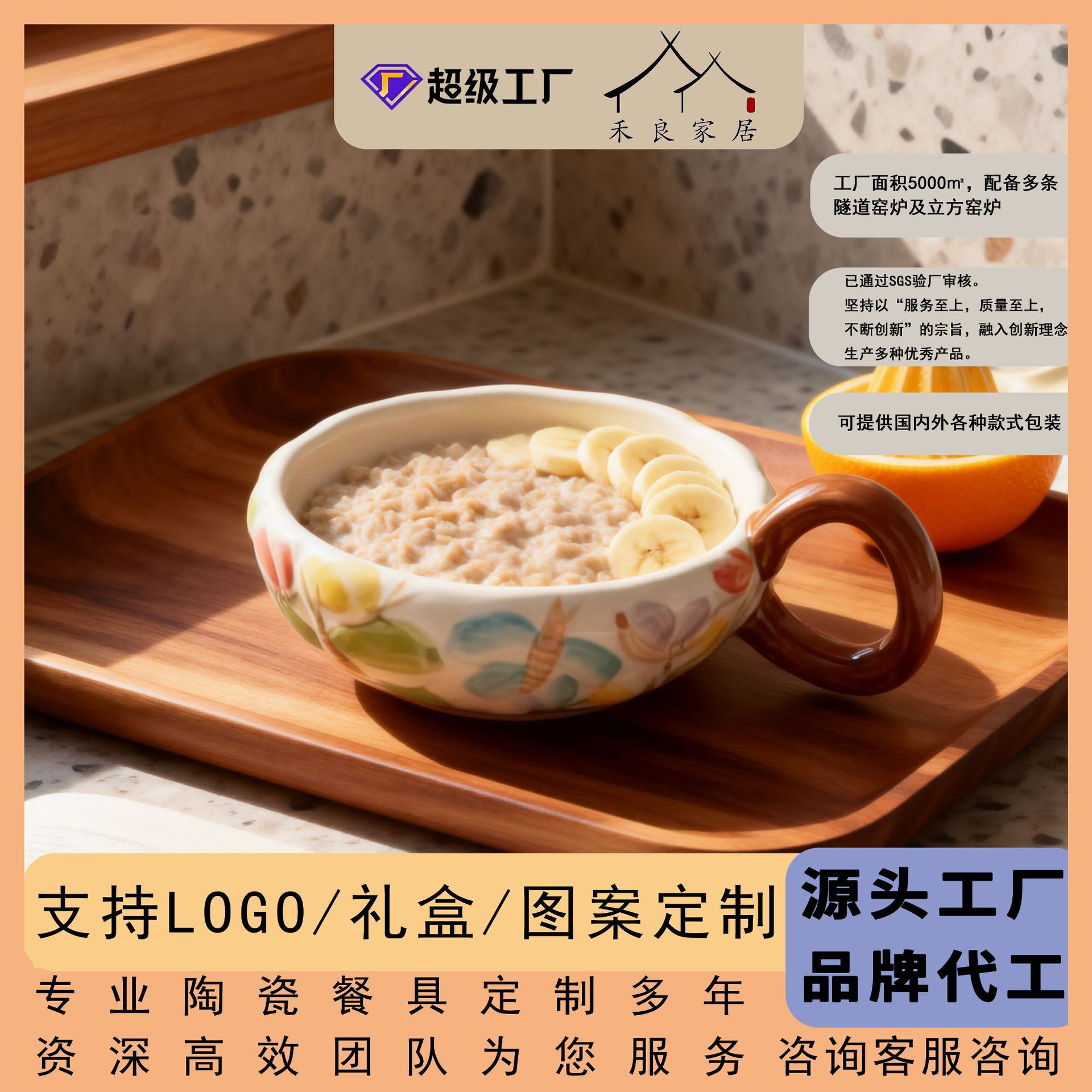 高颜值带柄碗沙拉甜品碗水果柄碗餐具跨境批发餐厅小众可爱碗