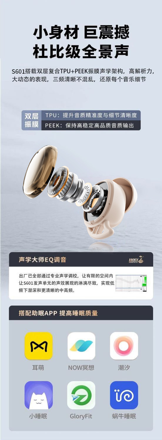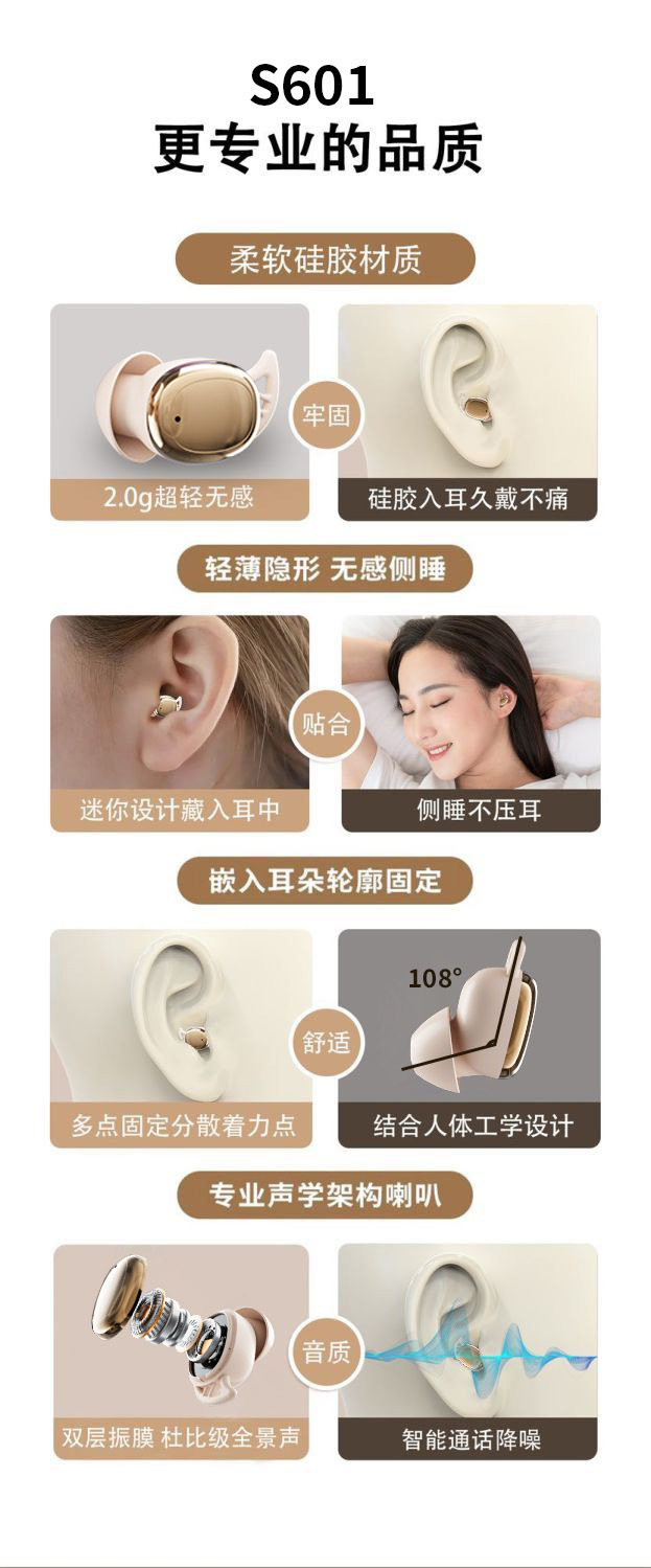 【APP】新款Sleep01入耳式降噪睡眠蓝牙无线耳机佩戴舒适侧躺不疼