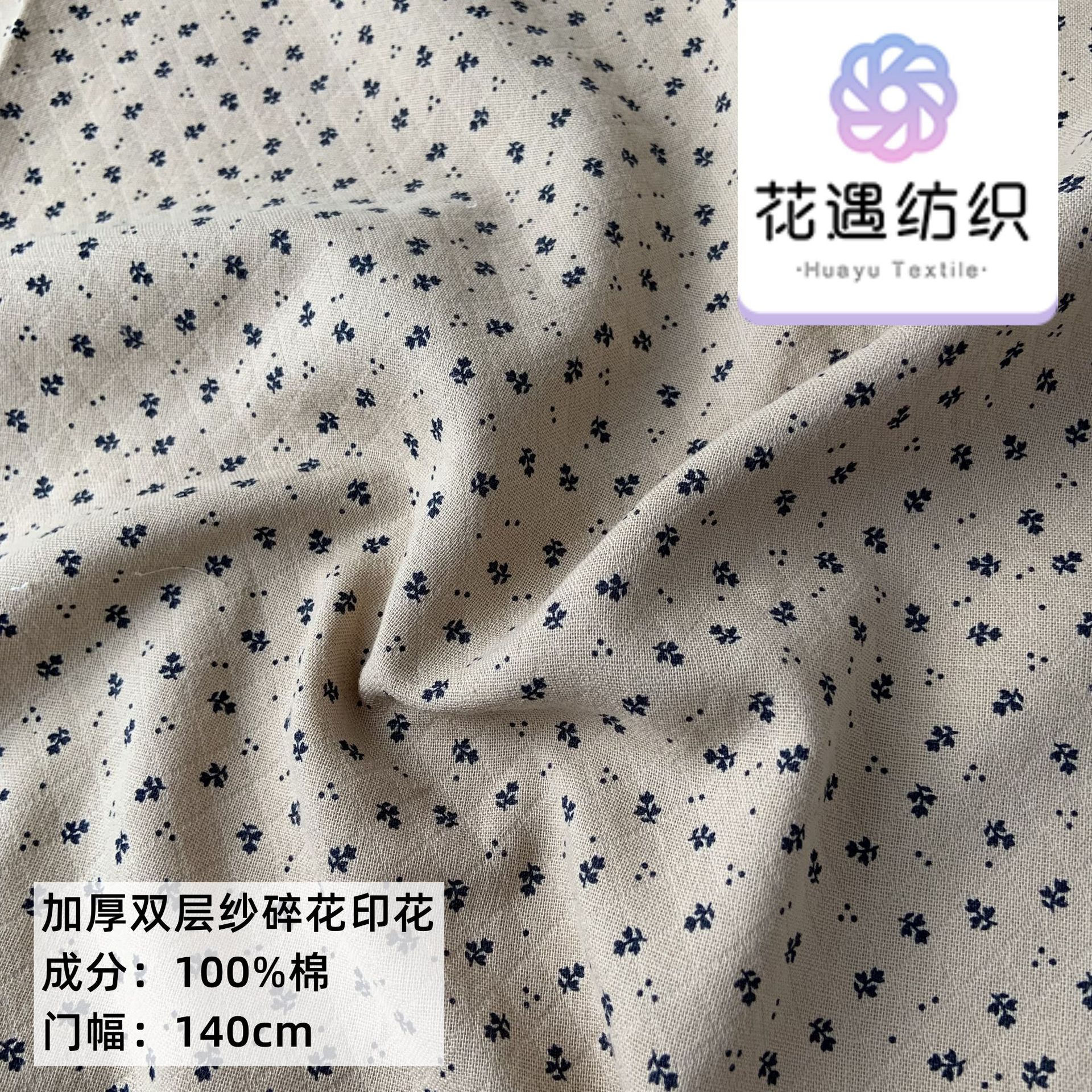 春と秋の新商品の全綿は厚い二重の紗の花のプリントのストラップの子供服のシャツのワンピースのチャイナドレスのバッグの生地を厚くします。