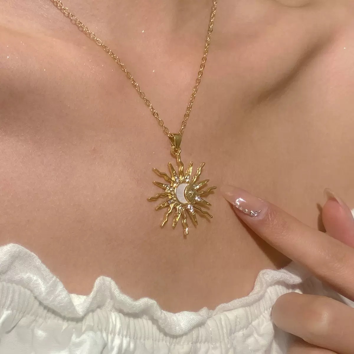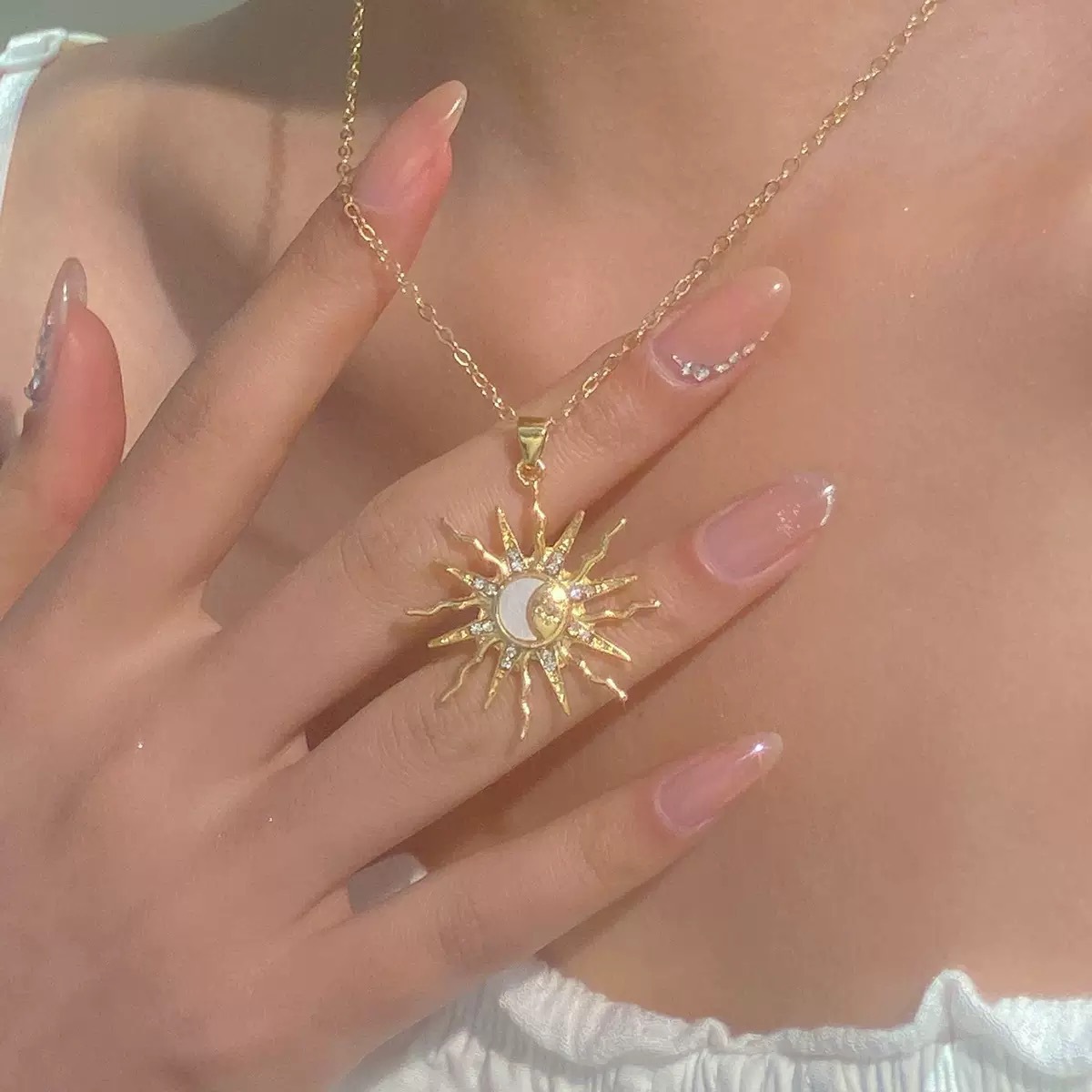 欧美跨境饰品时尚合金太阳月亮项链星星吊坠小众百搭镶钻项饰配饰