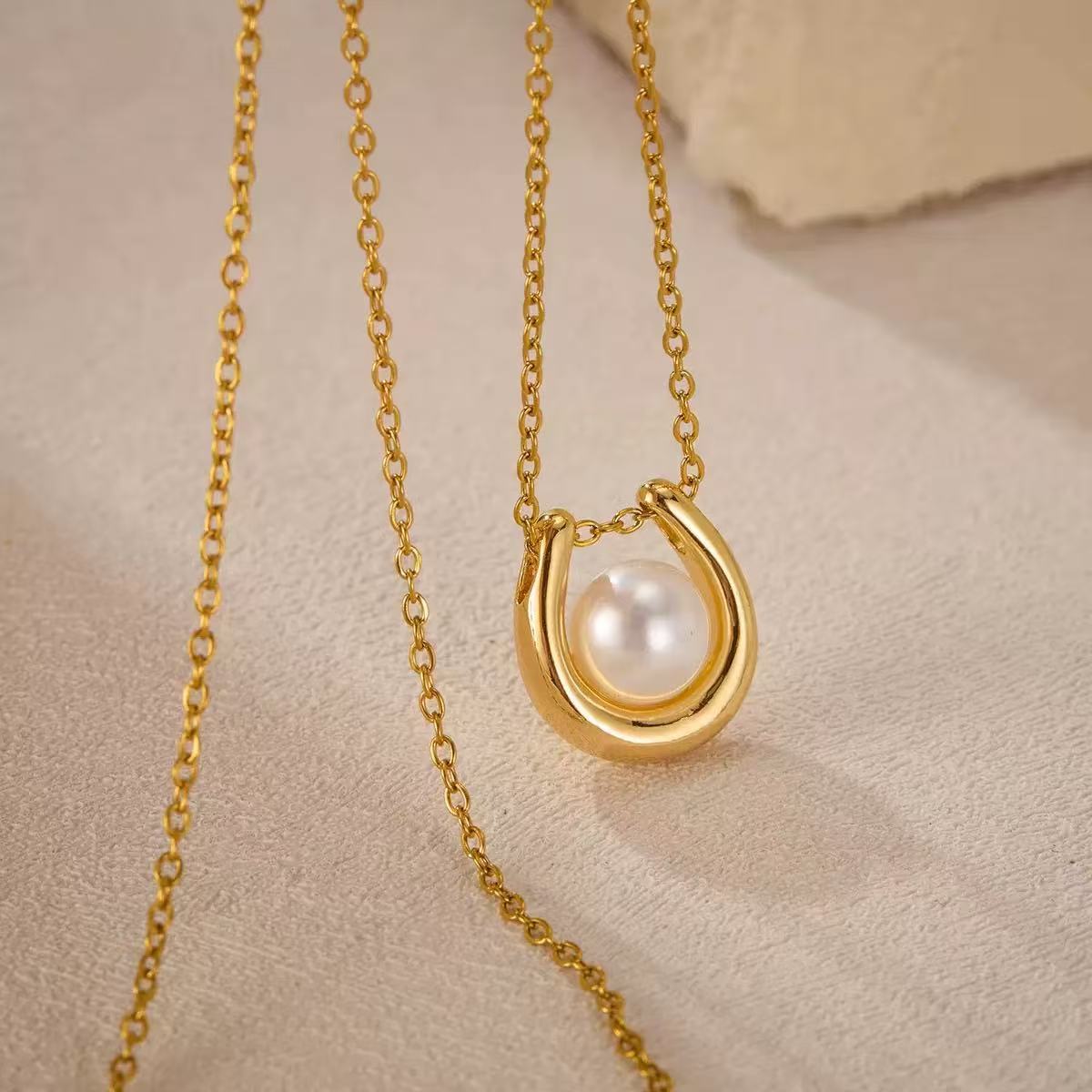 2025欧美跨境新款时尚气质轻奢高级感爆款马蹄U形珍珠项坠女项链