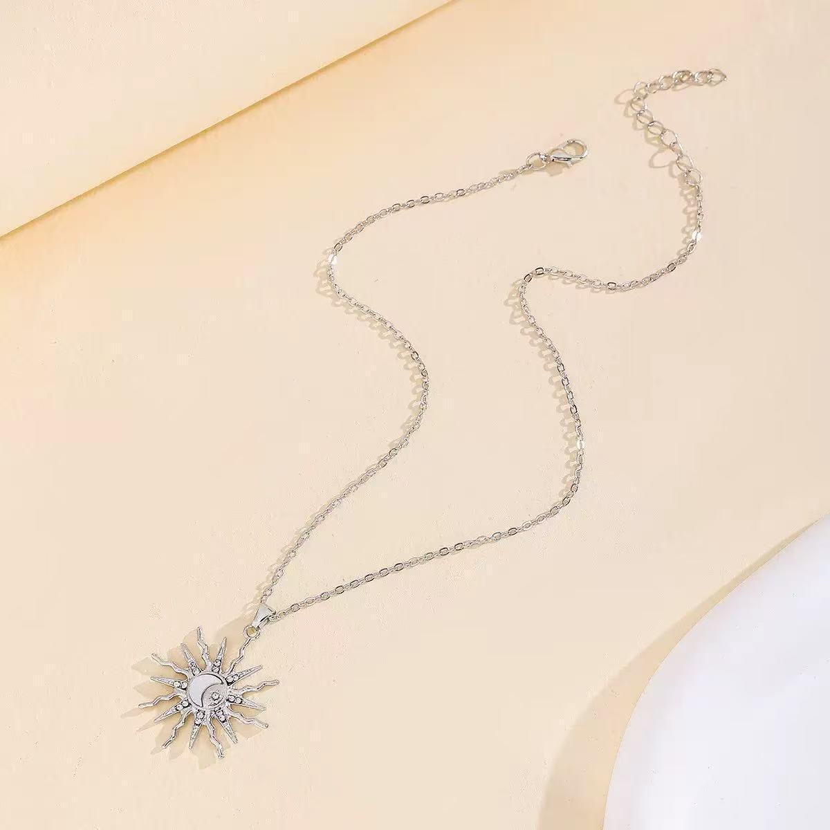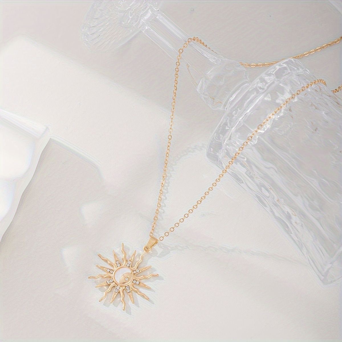 欧美跨境新款饰品合金镶钻太阳吊坠项链配饰女时尚百搭高级感项饰