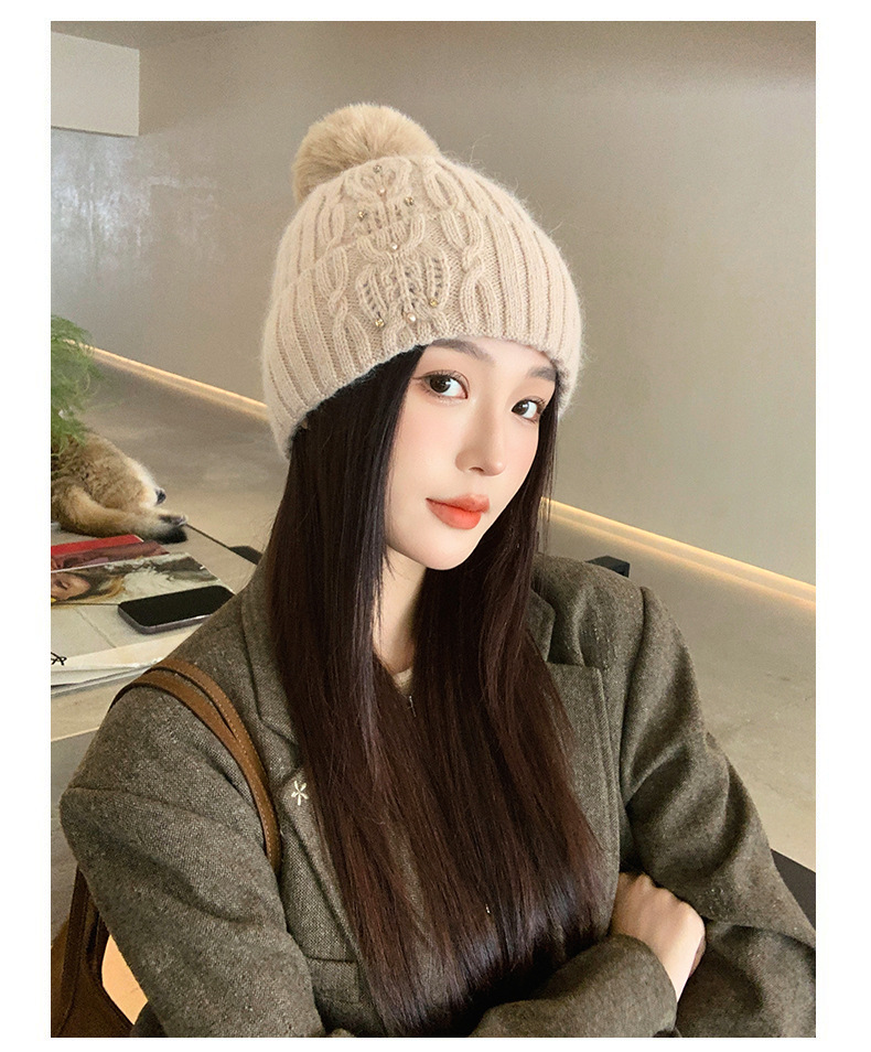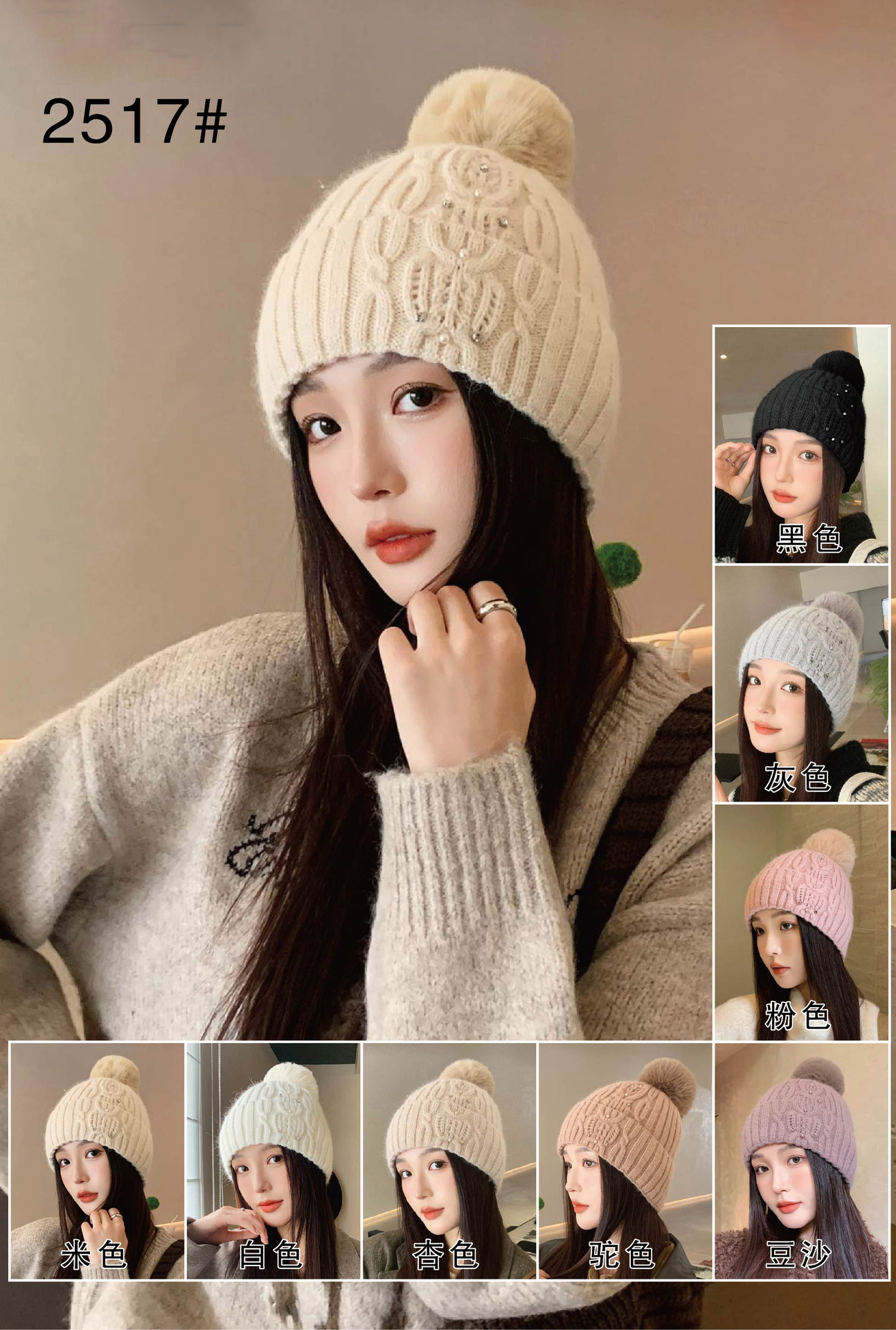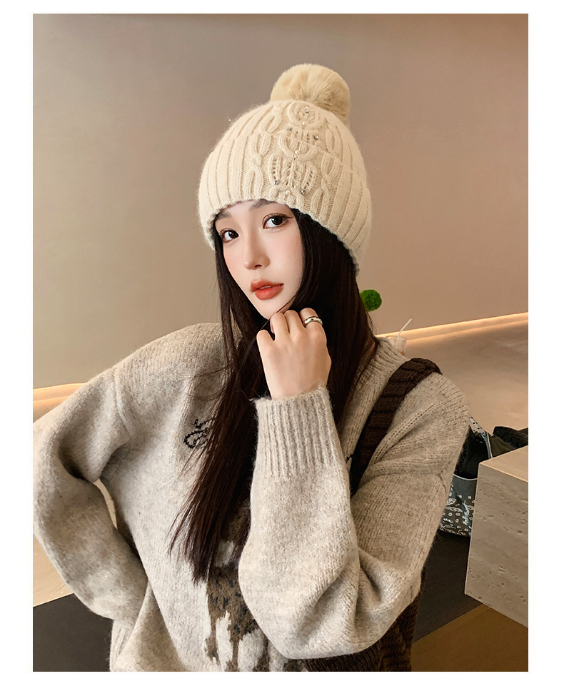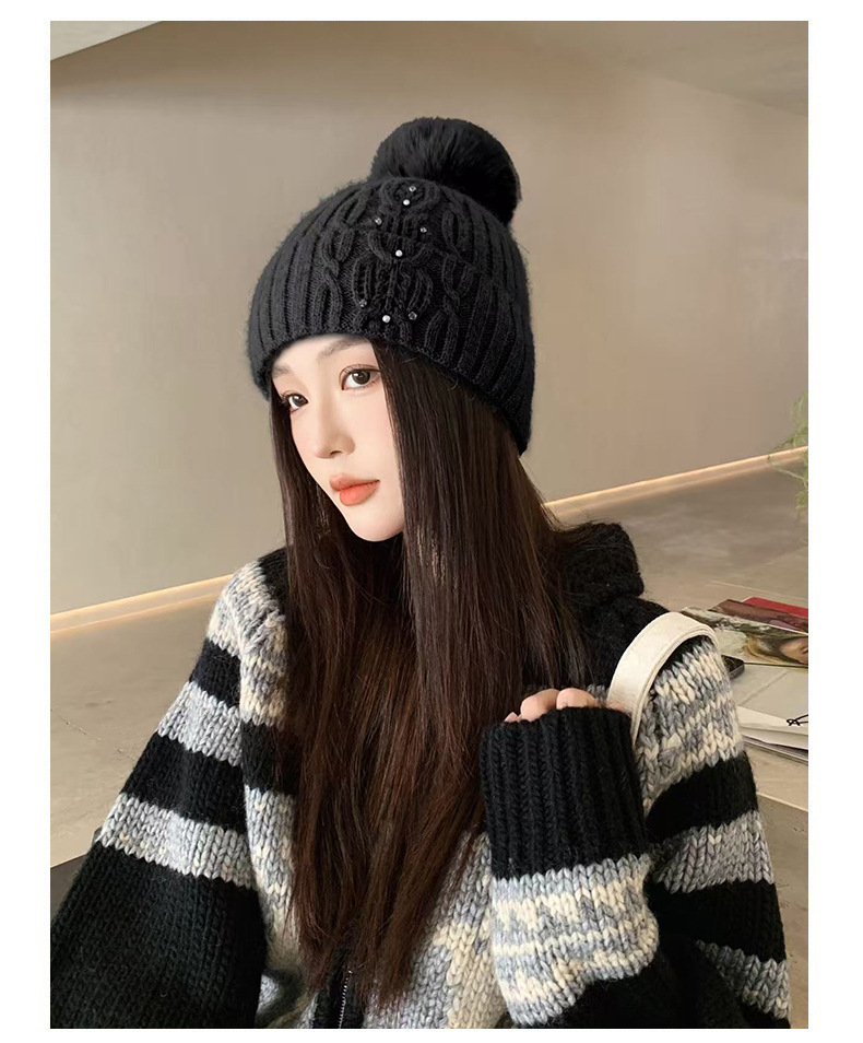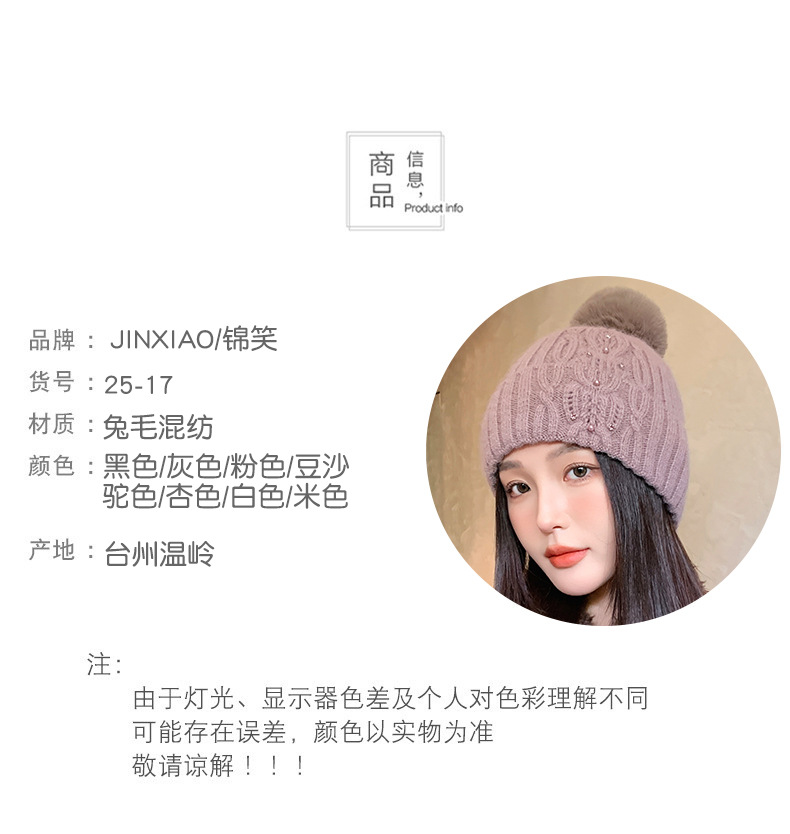 防寒保暖毛球针织帽子女生户外防风加绒百搭护耳毛线帽冬季新款潮