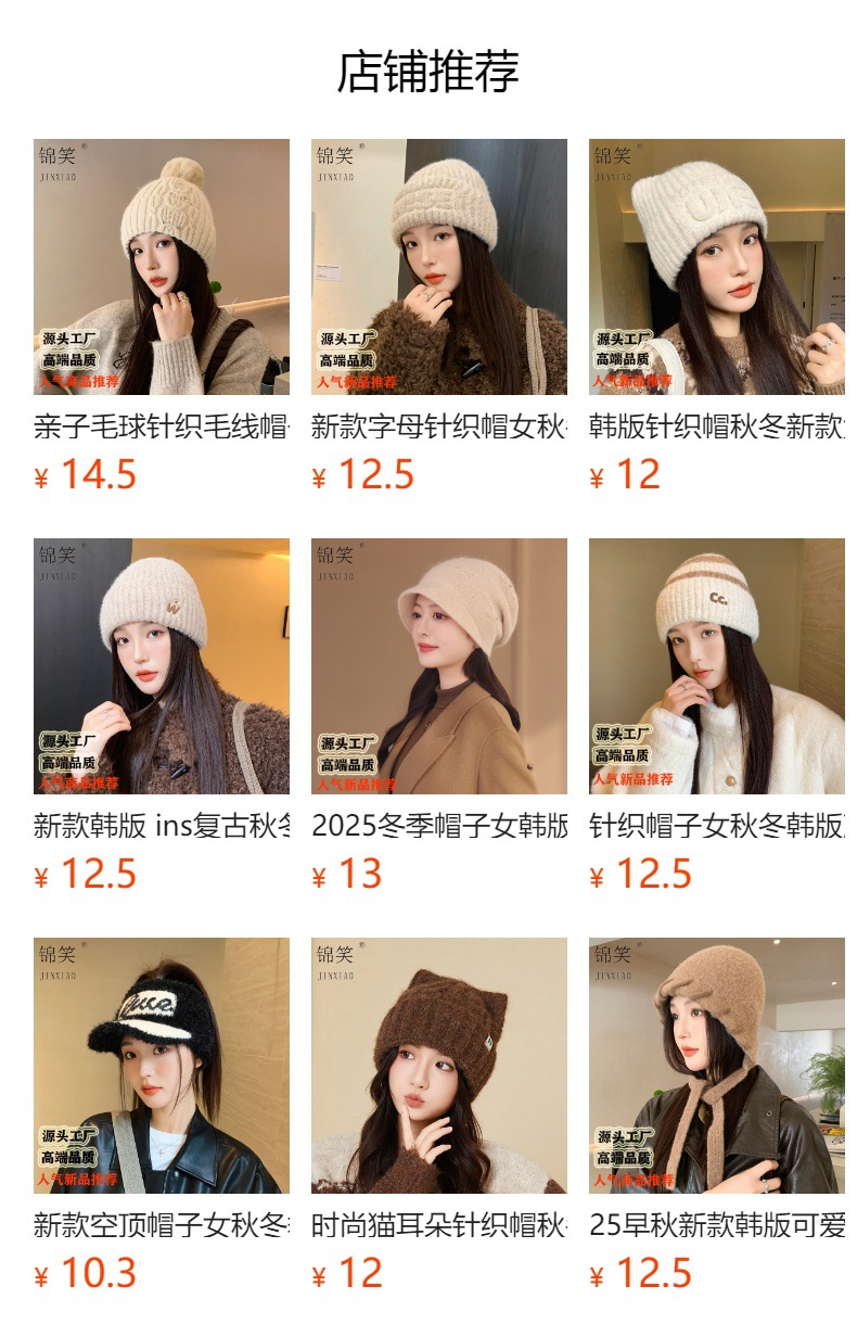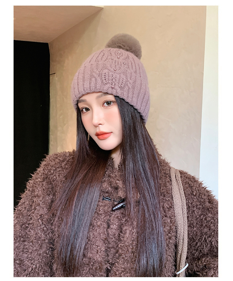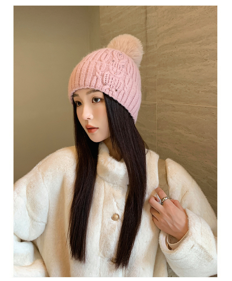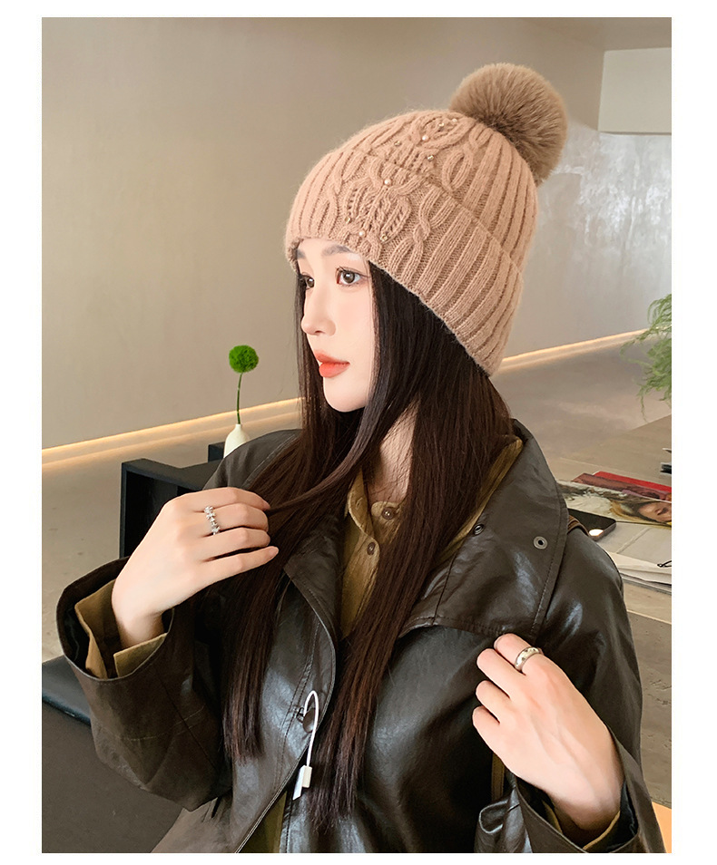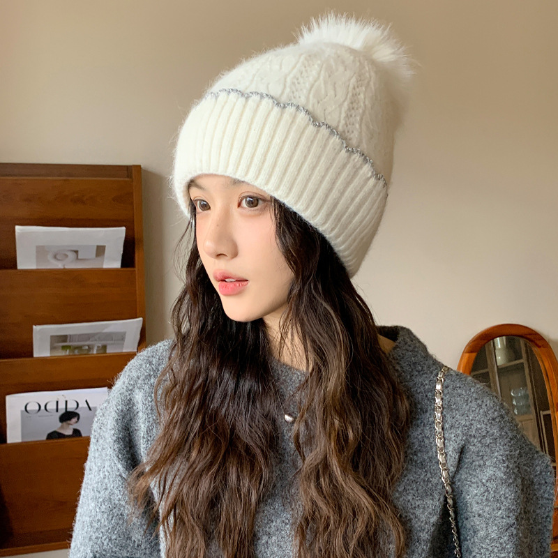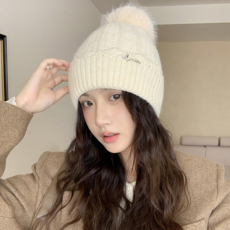 可爱减龄毛绒大毛球加厚保暖毛线帽子女秋冬休闲百搭加绒针织潮帽