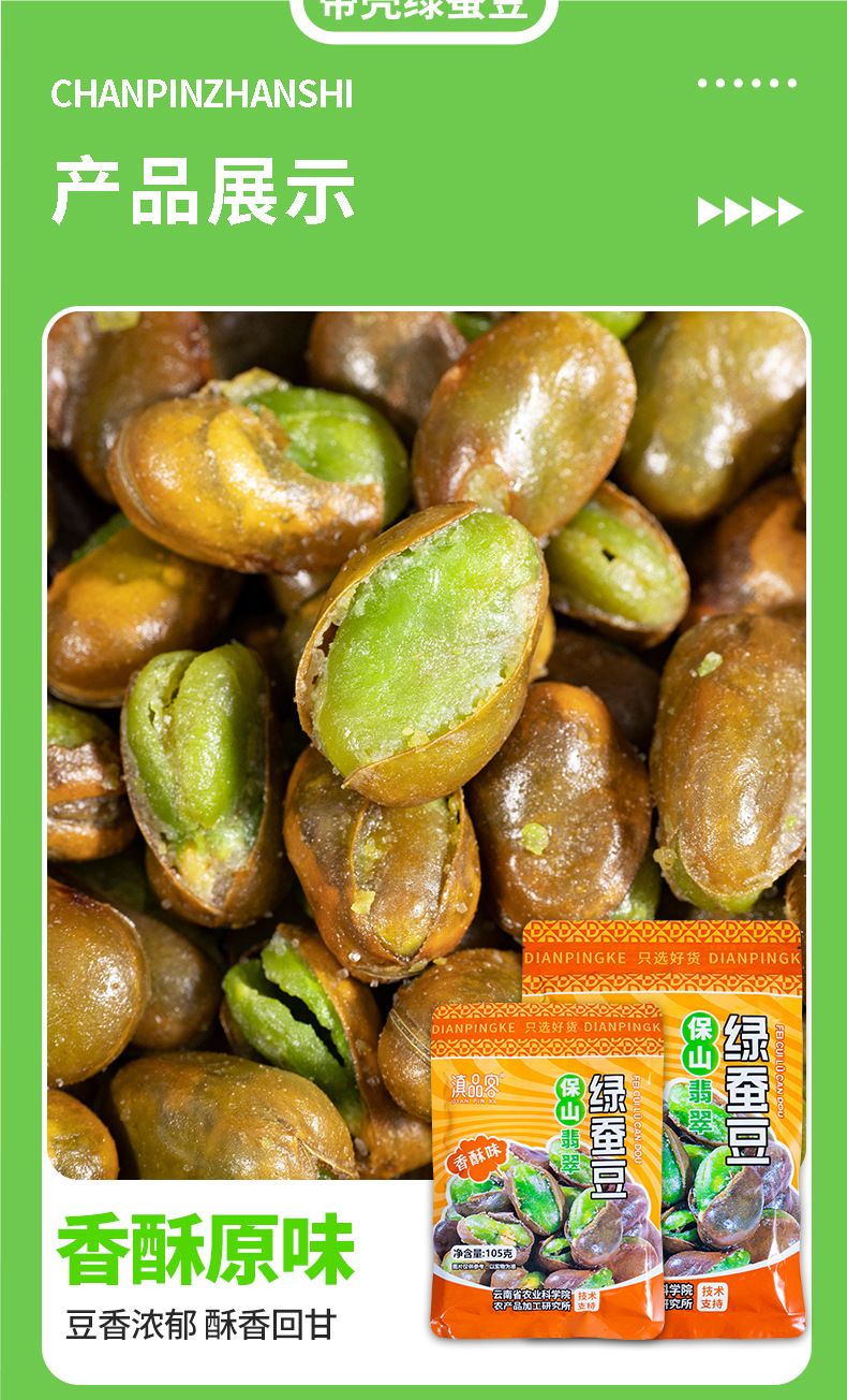 農科院品客雲南保山緑心蚕豆新商品袋入りレジャー追劇スナック原味ナッツ炒め品