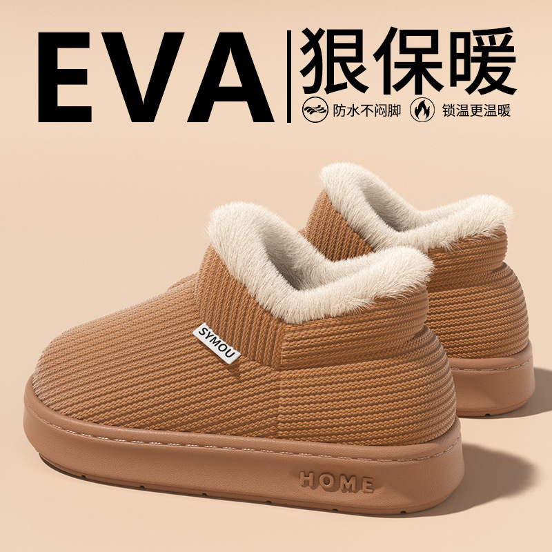 秋冬季棉拖鞋女包跟加厚软底室内保暖月子鞋全包毛绒男款雪地靴