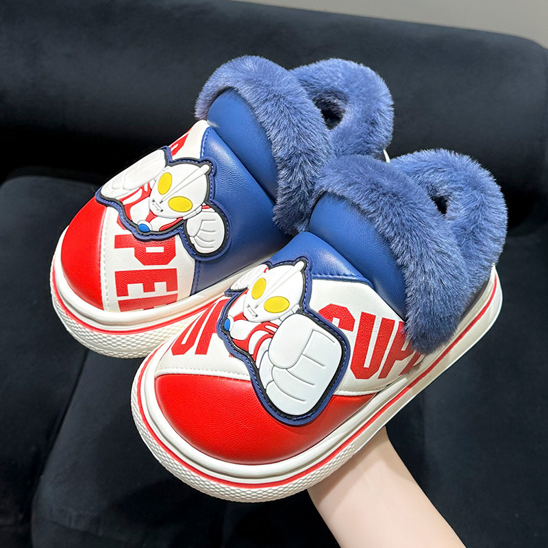 かわいいウルトラマン子供綿スリッパ男の子 2024 新しい冬屋内と屋外のベビー暖かい綿の靴